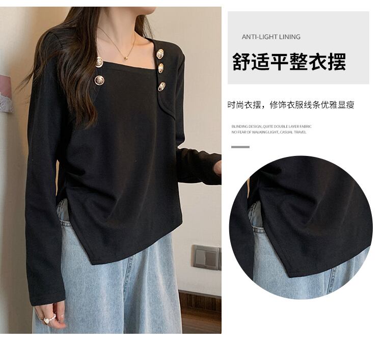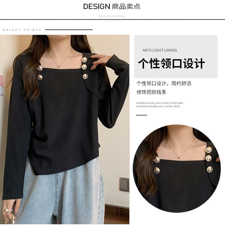 大きいサイズの婦人服 2023 春の新しいファットシスター eign スタイルのデザインセンスファッションスクエアカラー小さな腹カバートップ女性 大きめサイズ スプリング 春物 スクウェア 8884187432679024