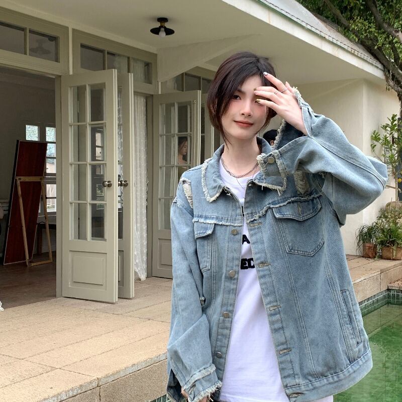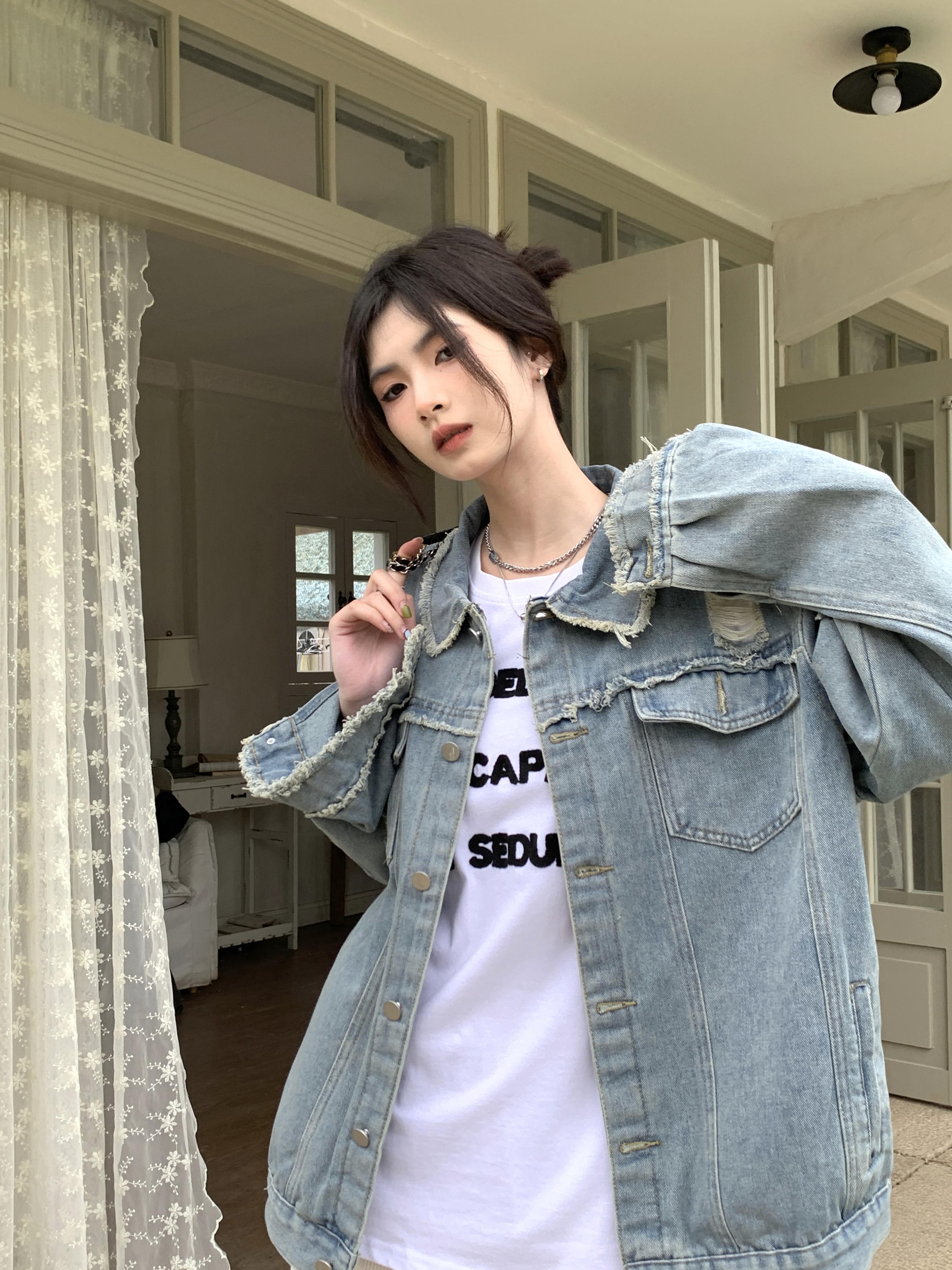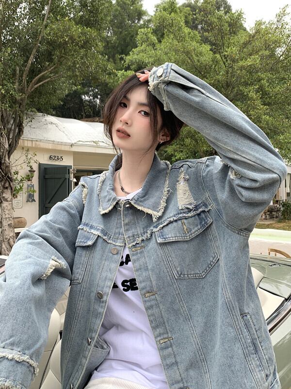 大きいサイズの婦人服 2023 春服ファットシスターズ新しいレトロな古風な起毛ルース隠し肉痩身デニムジャケット 大きめサイズ スプリング 春物 8884148306483395