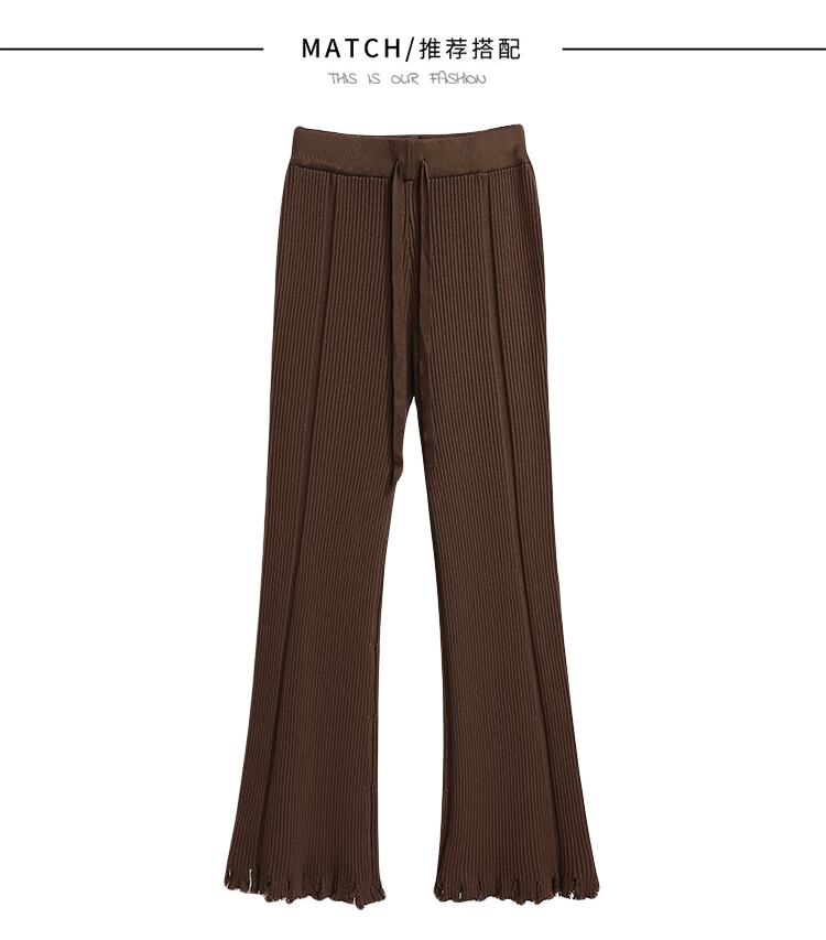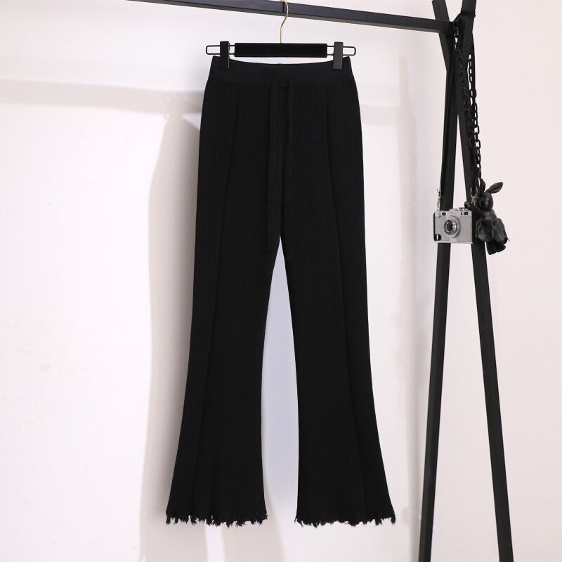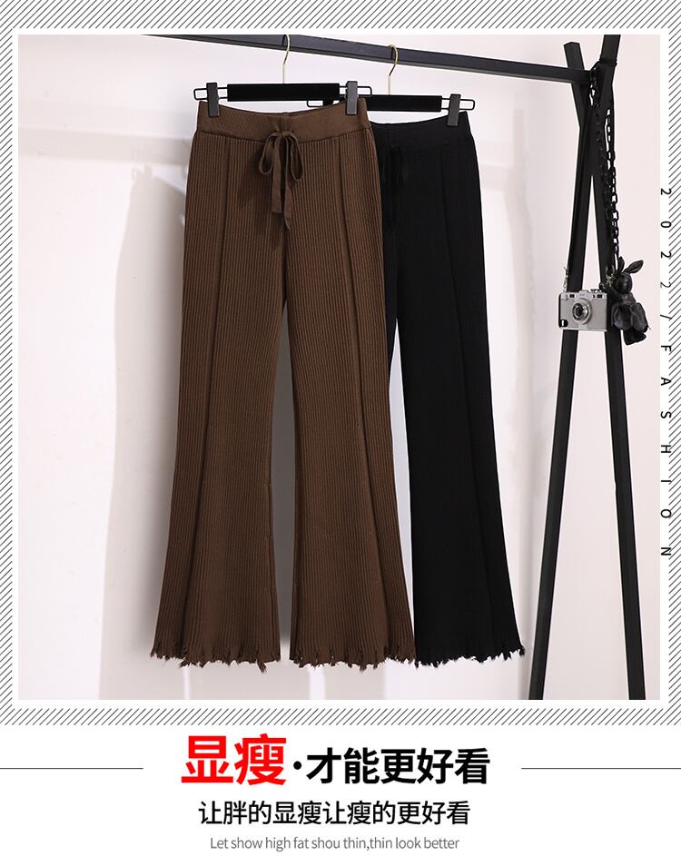 大きいサイズの婦人服2023春の新しいスタイルの太った姉妹は、薄さを示し、年齢を減らし、肉の穴を覆い、デザイン感覚のニットベルボトムパンツ 大きめサイズ スプリング 春物 888412908540521
