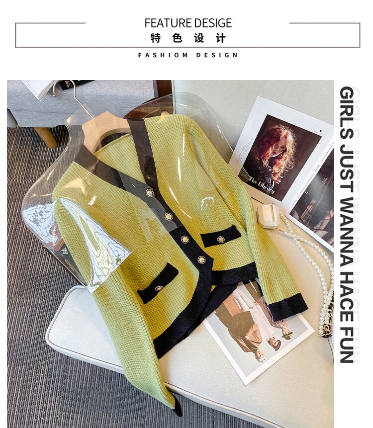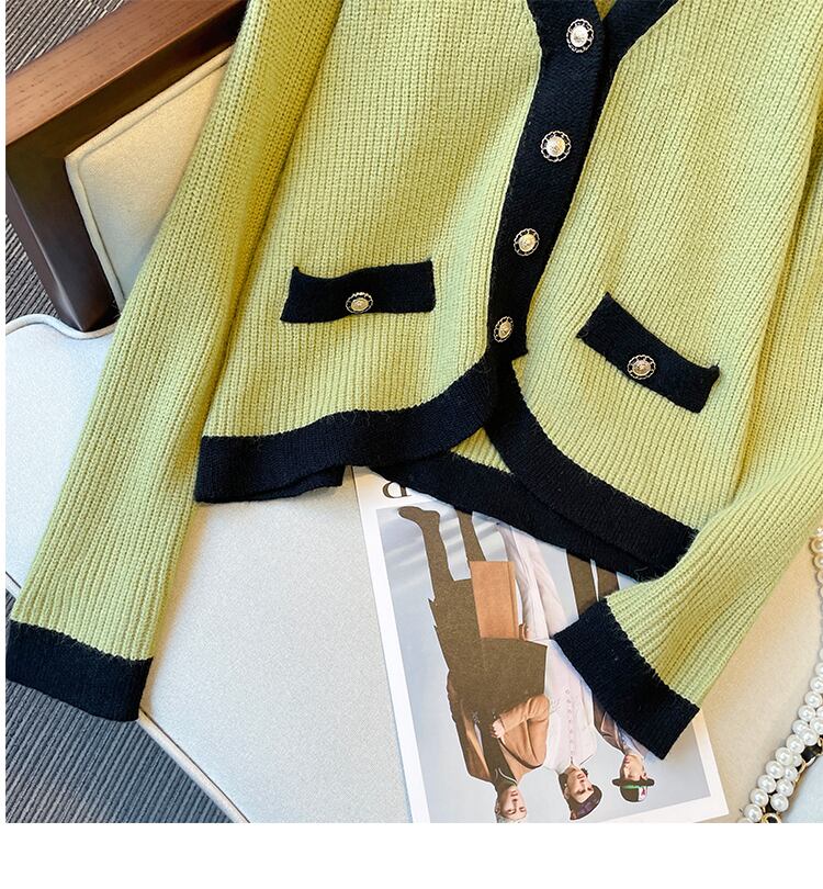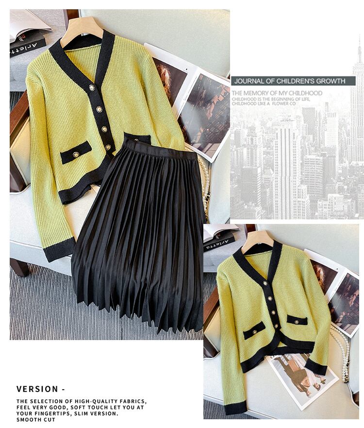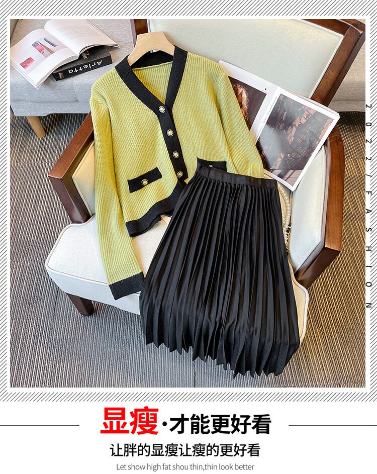 プラスサイズの婦人服 2023 ファットシスター春の新ファッションコントラストカラーカーディガンセーターハイウエストプリーツスカート 2 点セット ハイウェスト 大きめサイズ スプリング 春物 8884172623258060