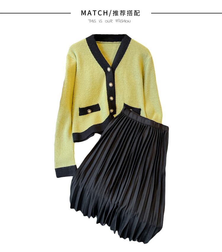色:シングルセーター,シングルプリーツスカート,ツーピースセット