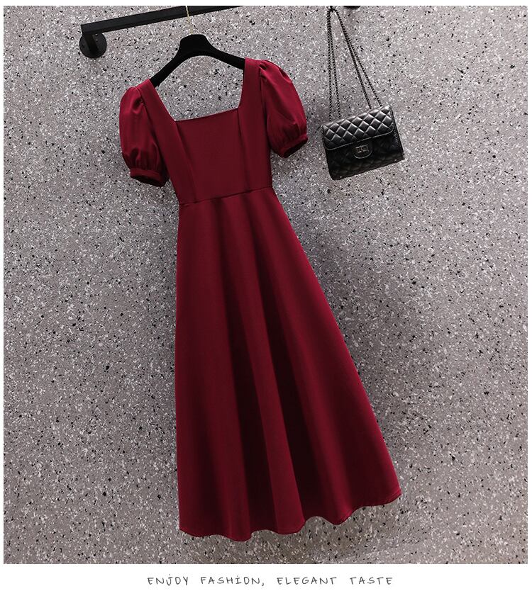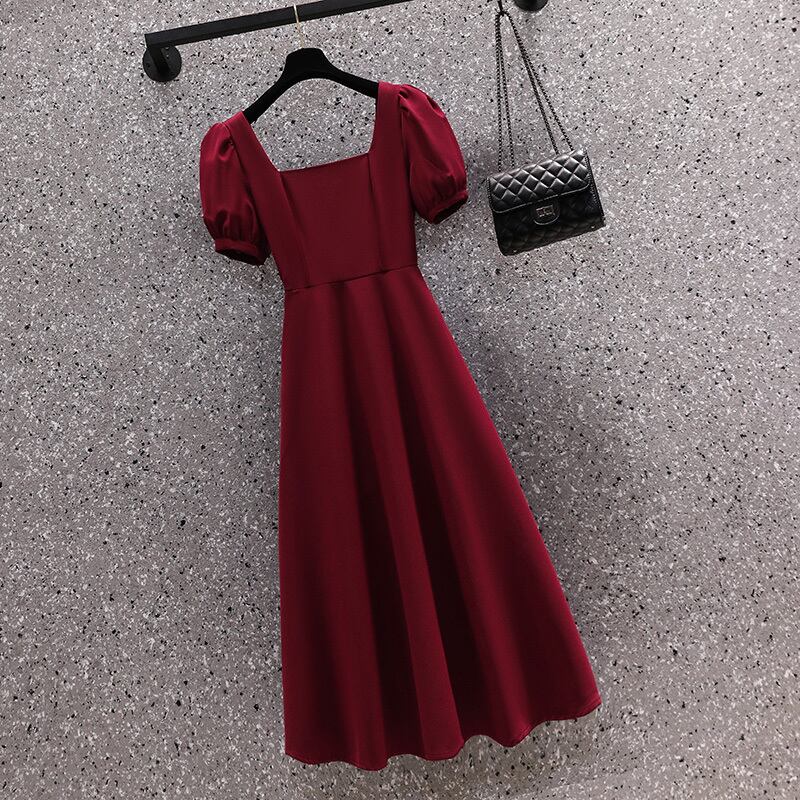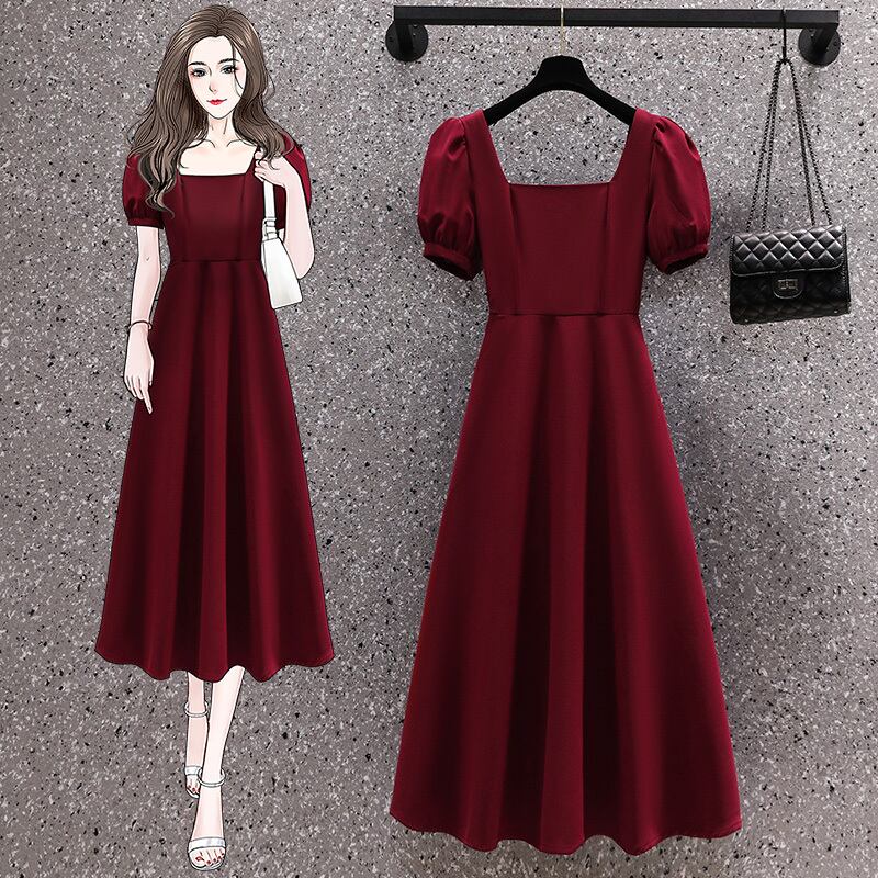 プラスサイズの婦人服 2023 夏の新しいファットシスターウエストフレンチスタイル無地年齢減少気質洋風カジュアルドレス 大きめサイズ サマー 夏物 ソリッドカラー 8884196501303027