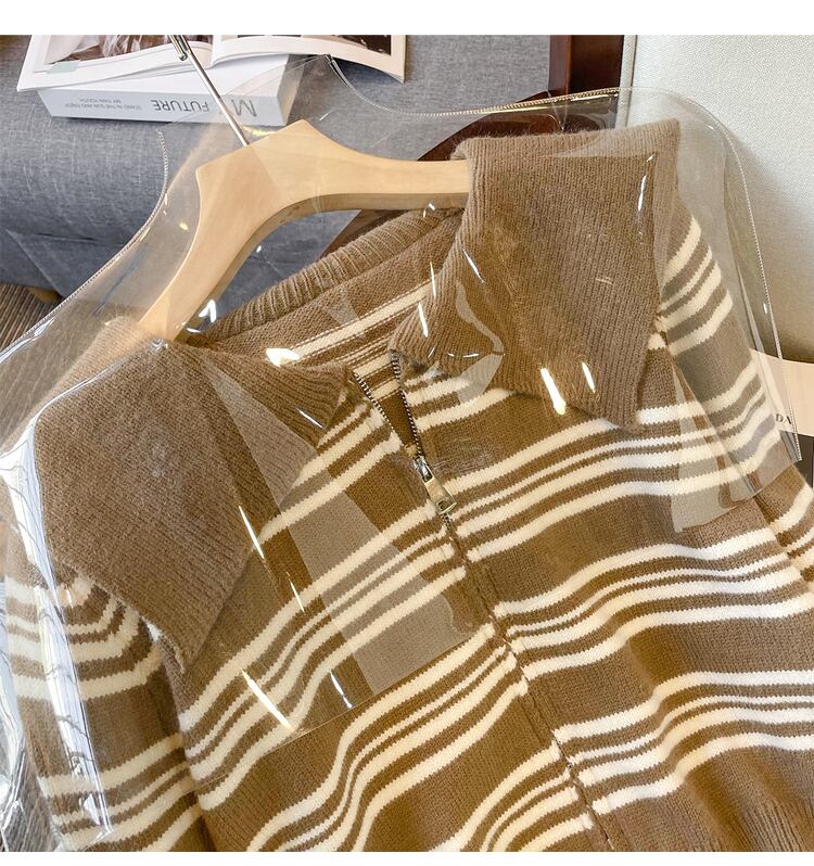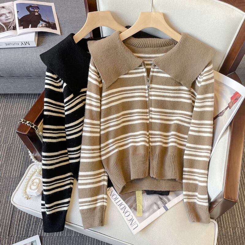 プラスサイズの婦人服 2023 トレンディな女性の春の新しいファットシスターストライプ薄型スリムカーディガンニット多目的ファッションセーター 大きめサイズ スプリング 春物 8884121836325654