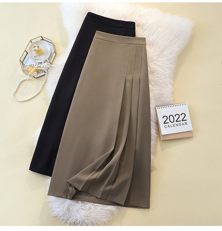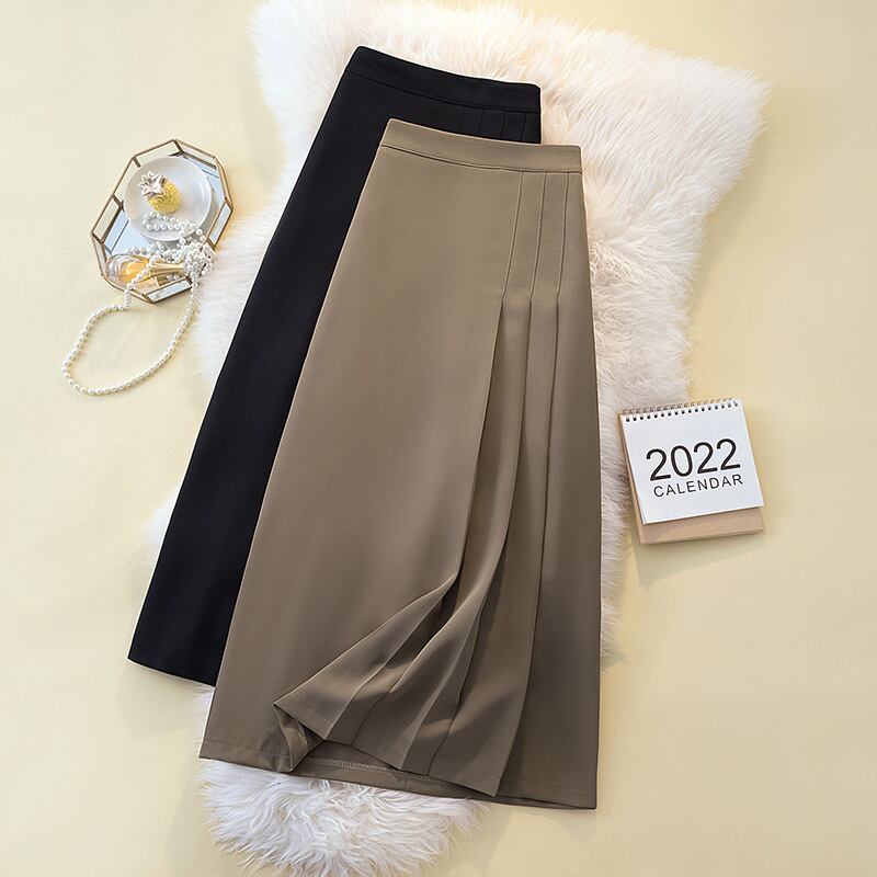 プラスのサイズの婦人服 2023 ファット シスター春の新しいハイ ウエスト薄いプリーツ スカート ミドル丈 a ライン スーツ スカート ハイウェスト 大きめサイズ スプリング 春物 Aライン 888412013255884