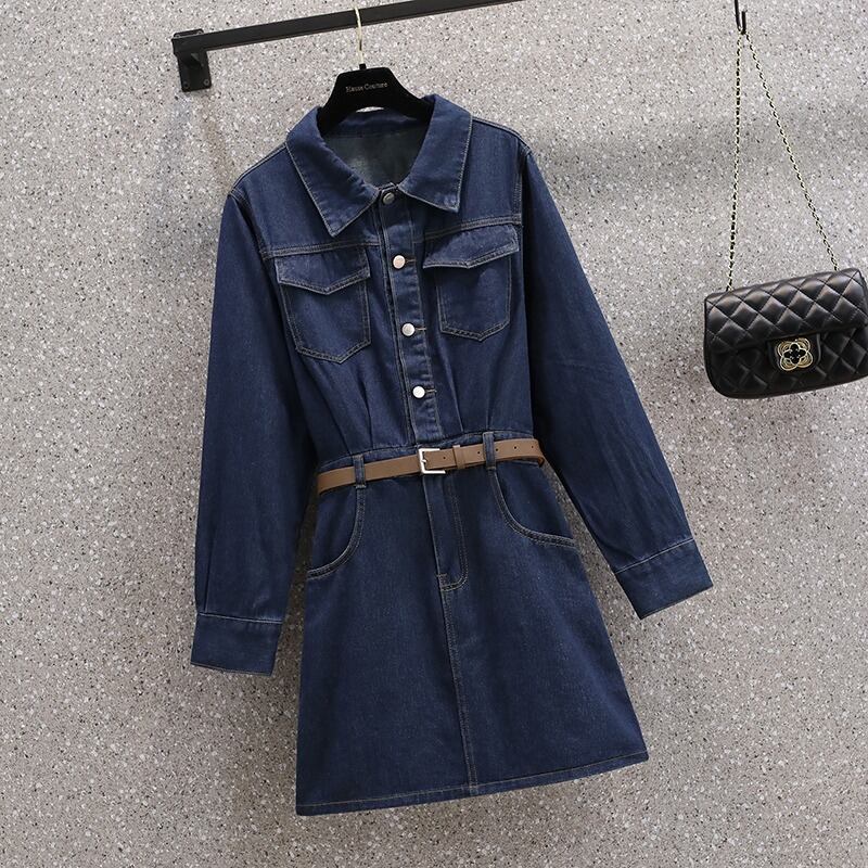 プラスサイズの婦人服 2023 トレンディな女性の春の新しい太った姉妹の年齢を減らすルーズフィットのウエストをカバーする洋風デニムドレスの女性 大きめサイズ スプリング 春物 8884142885232295