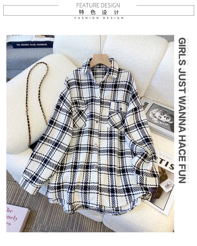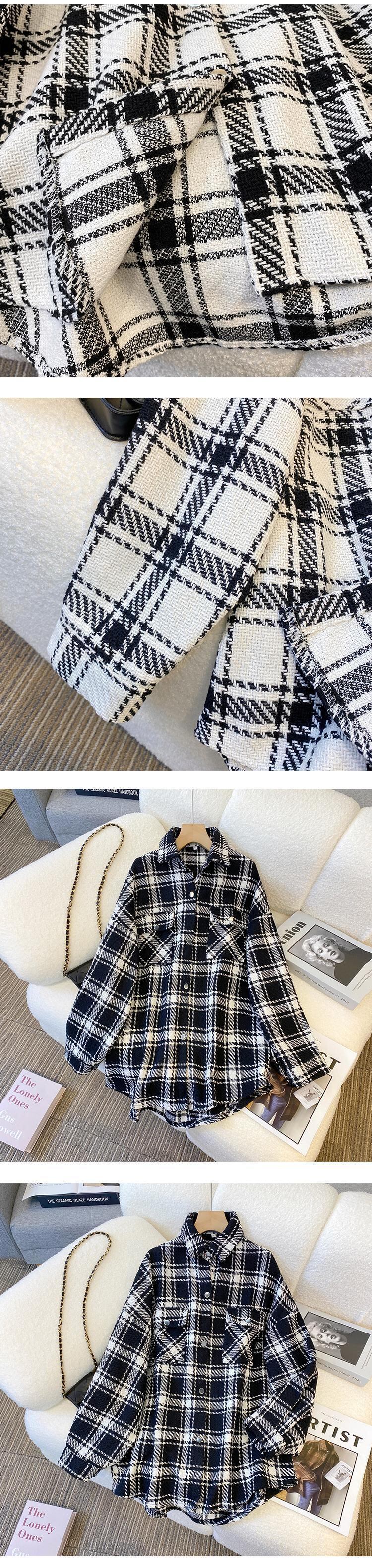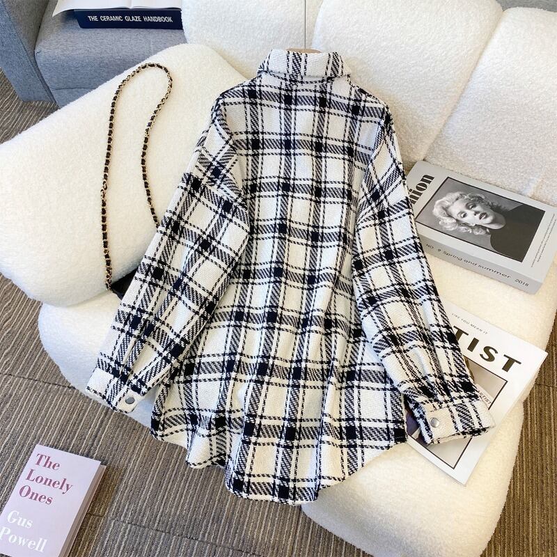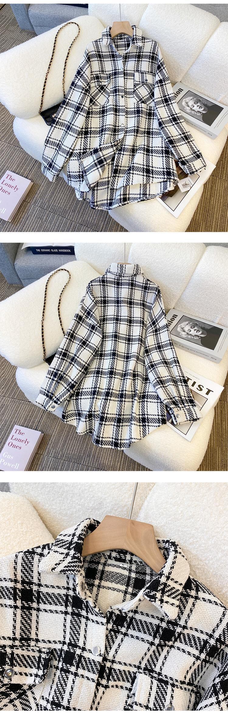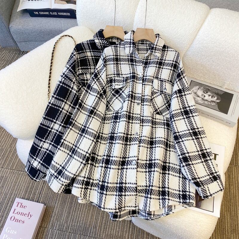 プラスサイズの婦人服 2023 トレンディな女性の春の新しいファットシスターファッション格子縞のシャツミッドレングスオールマッチ薄いコートの女性 大きめサイズ スプリング 春物 8884111024020834