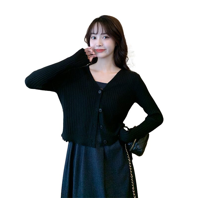 大きいサイズの婦人服 2023 ファット シスター春の新作フレンチ デニム ストラップ ドレス セーター カーディガン 2 点セット 大きめサイズ スプリング 春物 8884163650739090
