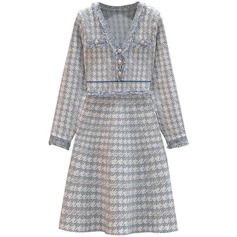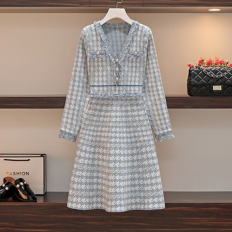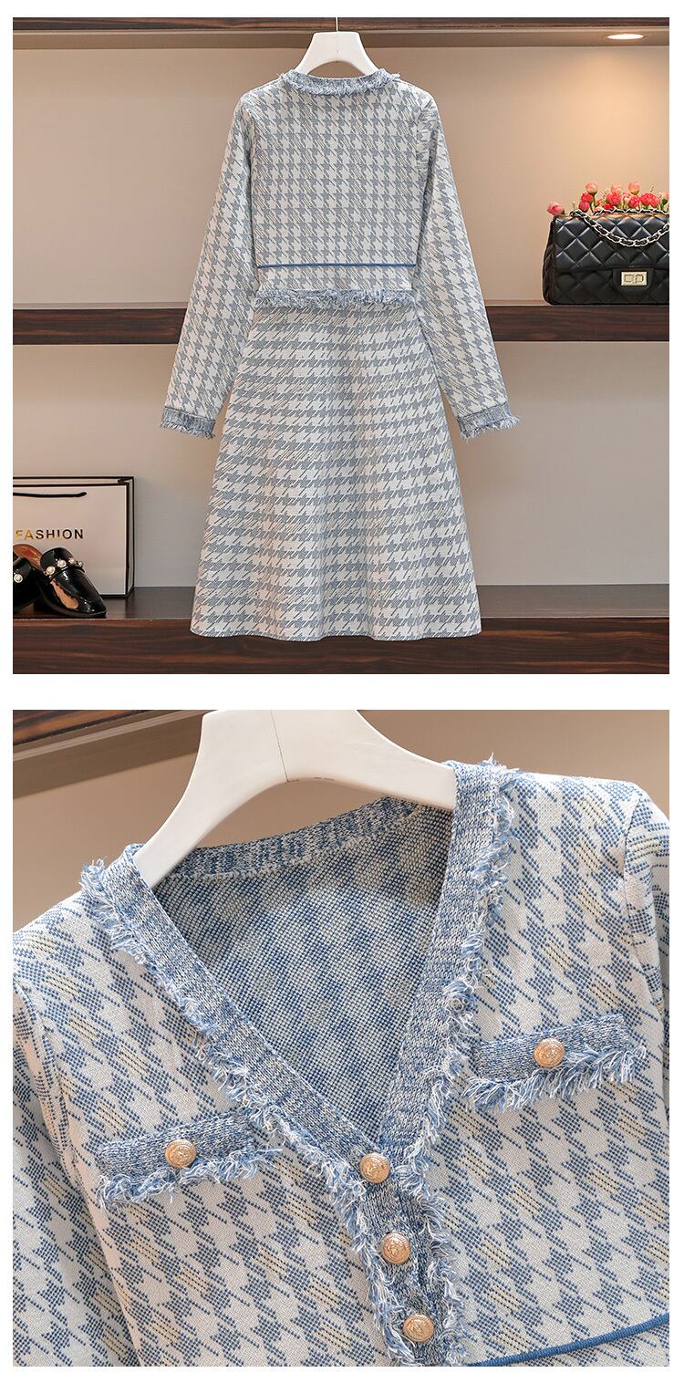 プラスサイズの婦人服 2023 トレンディな女性の春の新しいファットシスター長袖 A ラインニットウエストスリム弾性ドレス潮 ロング エラスティック 伸縮 大きめサイズ スプリング 春物 Aライン 8884146498139115