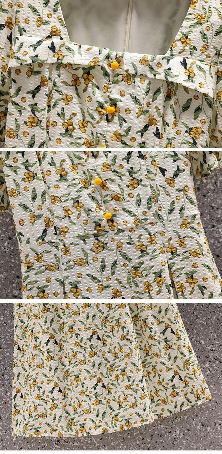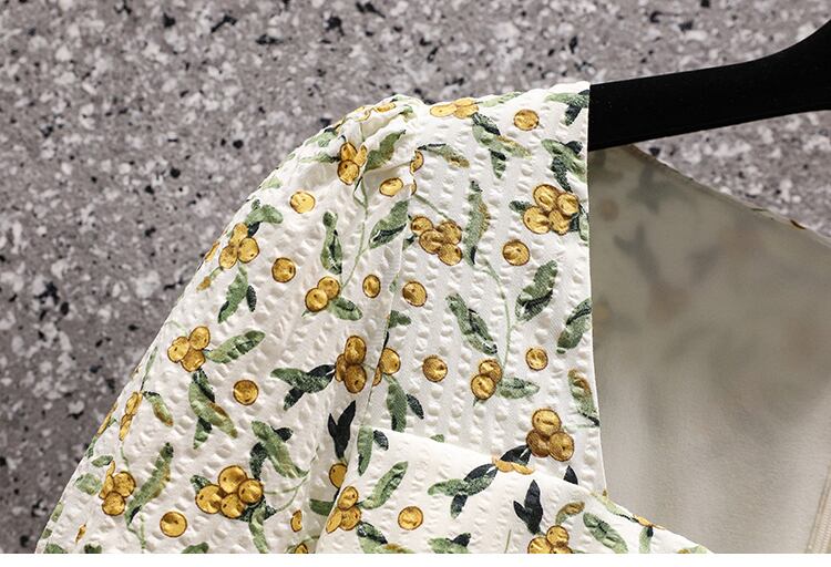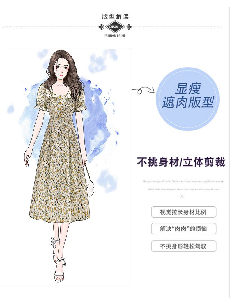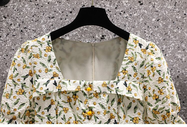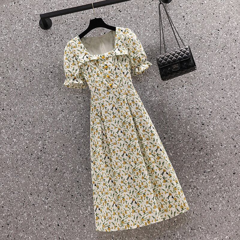プラスサイズの婦人服 2023 夏の新しいファットシスターファッション花柄スクエアカラーのエレガントなフレンチドレス 大きめサイズ サマー 夏物 スクウェア 8884187362106041
