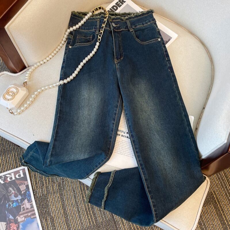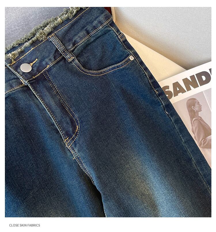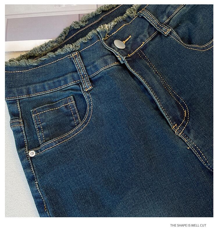 プラスサイズの婦人服 2023 春の新しいファットシスターレトロハイウエスト弾性薄い気質生エッジジーンズ女性 ハイウェスト エラスティック 伸縮 大きめサイズ スプリング 春物 8884132716170760