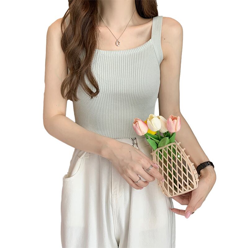 プラスサイズの婦人服 2023 新しい夏服脂肪姉妹新しい基本モデル無地スリムスリム弾性ニットベスト女性 エラスティック 伸縮 大きめサイズ サマー 夏物 ソリッドカラー 8884193817626337
