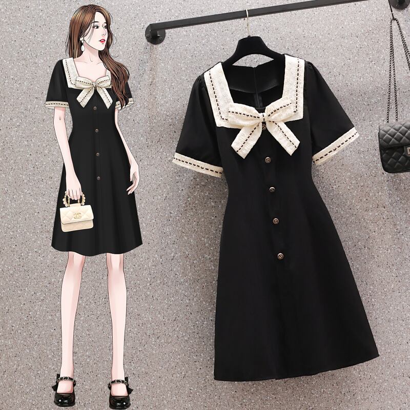 プラスサイズの婦人服 2023 夏の新しい太った姉妹の気質弓フレンチ スタイルの年齢を減らすスリムなウエストのドレス リボン 大きめサイズ サマー 夏物 8884163596500024