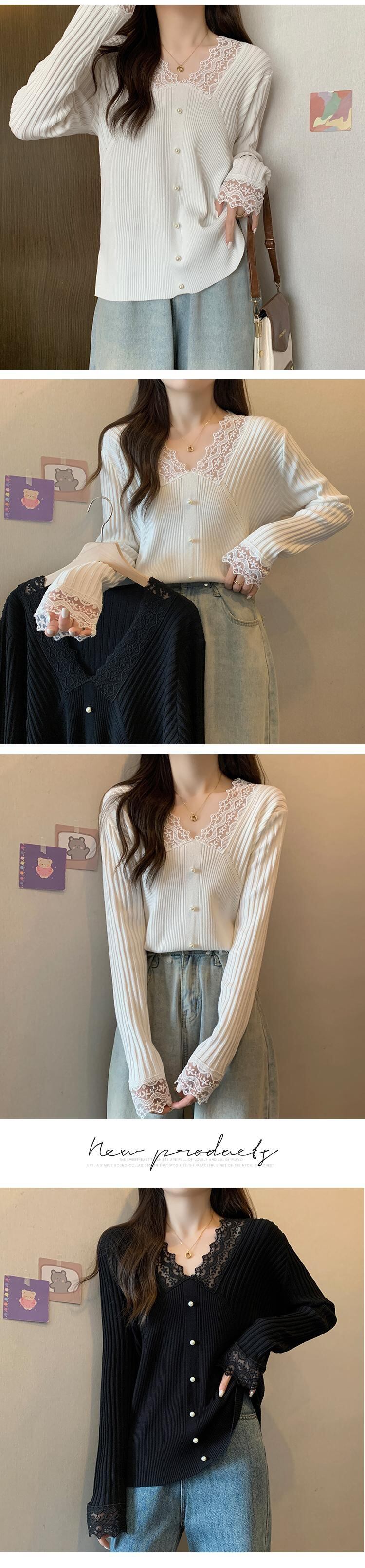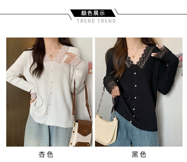 プラスサイズの婦人服 2023 トレンディな女性の春の新しいファットシスター eign スタイル V ネックニットセーターレーススプライシングセーター底入れシャツ 大きめサイズ スプリング 春物 Vネック 8884164456728761