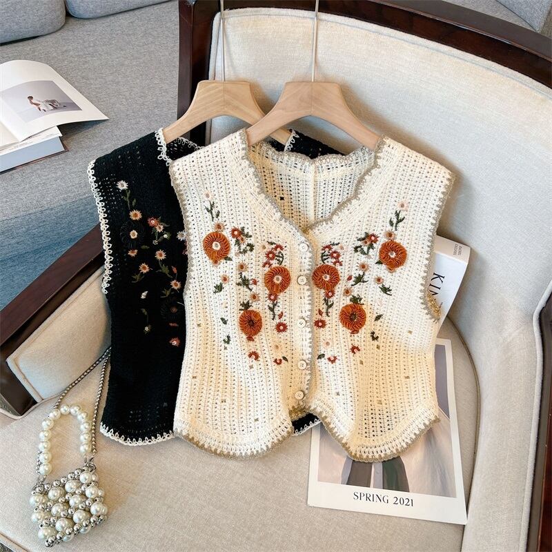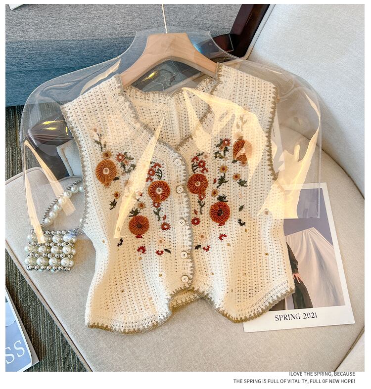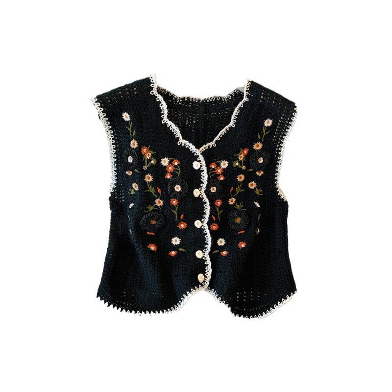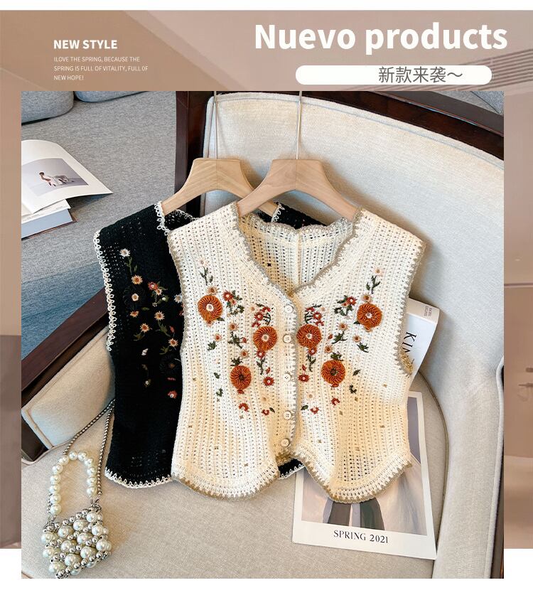 プラスサイズの婦人服 2023 春服脂肪姉妹新しいレトロなパターンデザインファッションオールマッチ刺繍ニットベスト 大きめサイズ スプリング 春物 8884188760890607