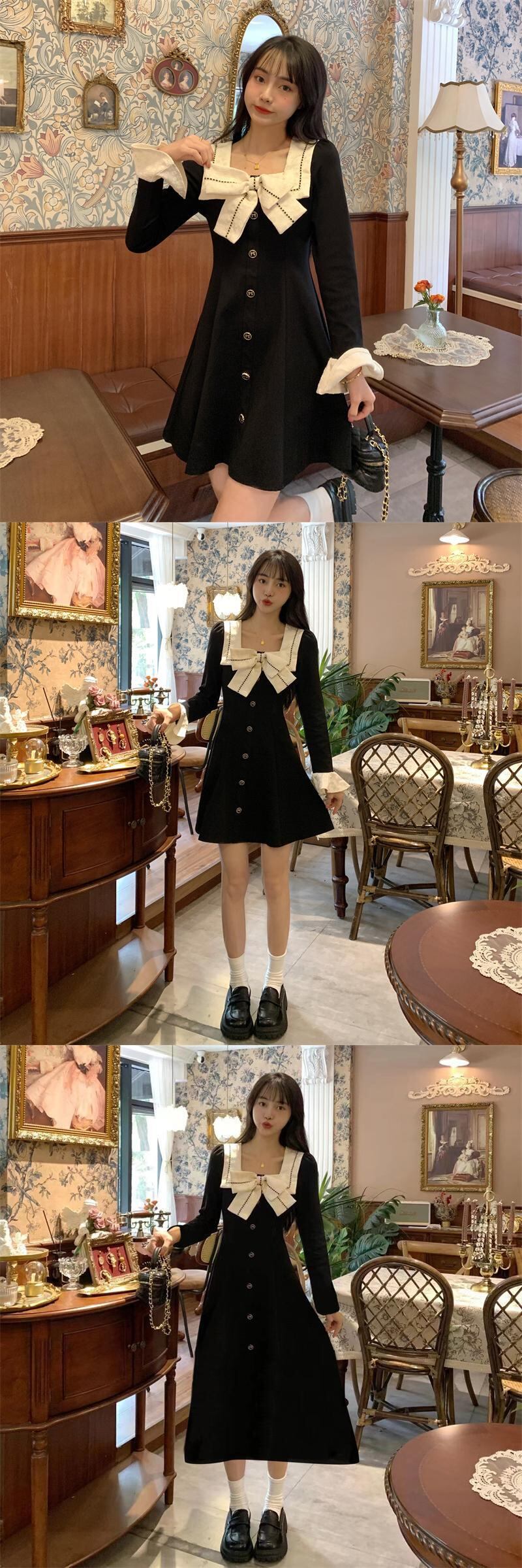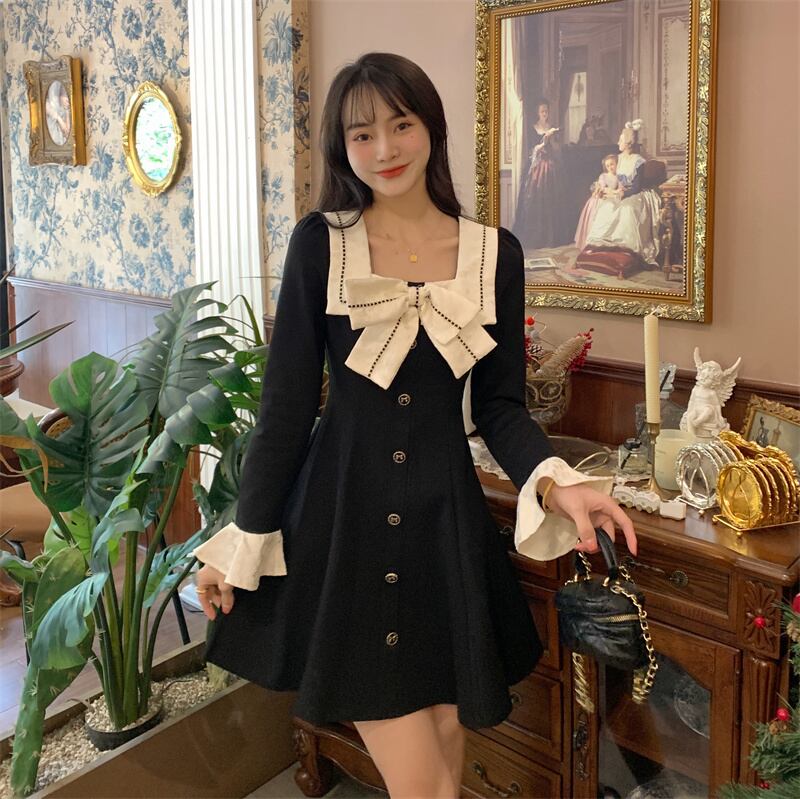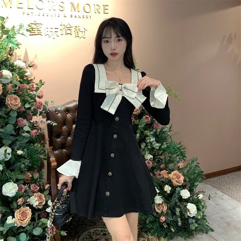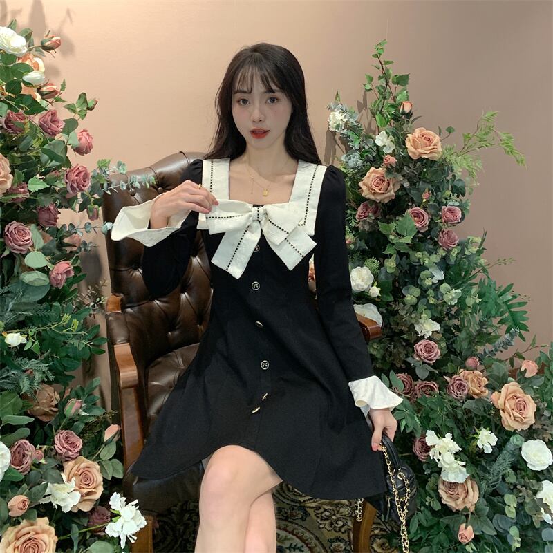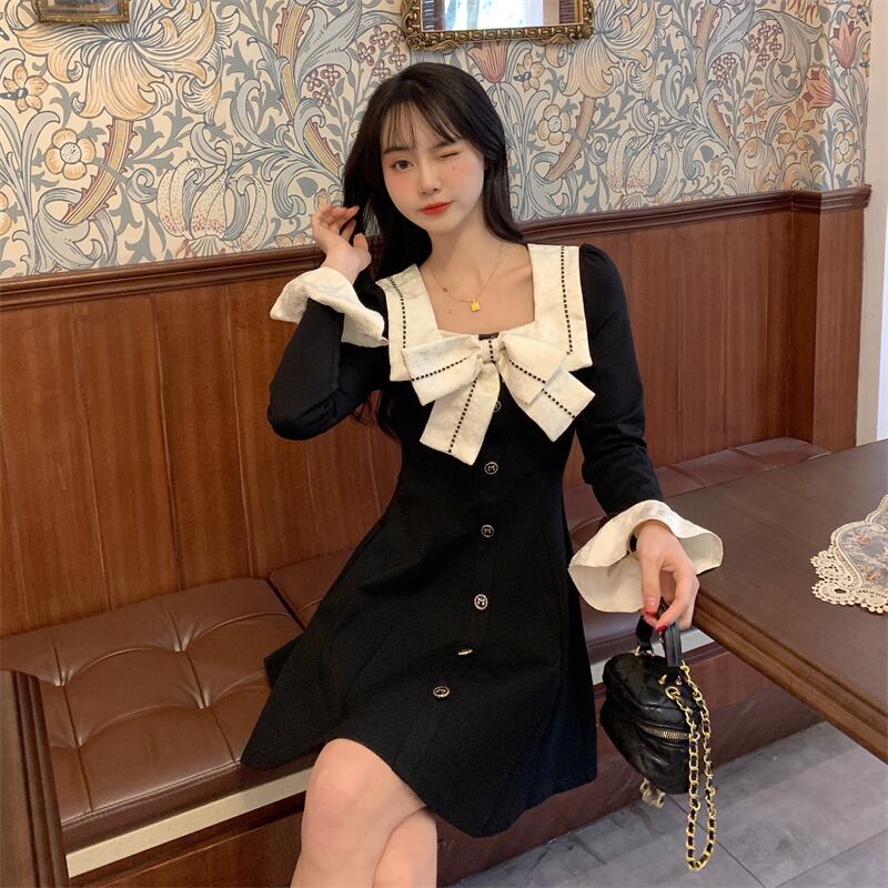 大きいサイズの婦人服 2023 春服脂肪姉妹新しいファッション襟弓デザインセンスウエスト痩身ドレス リボン 大きめサイズ スプリング 春物 8884132303132136