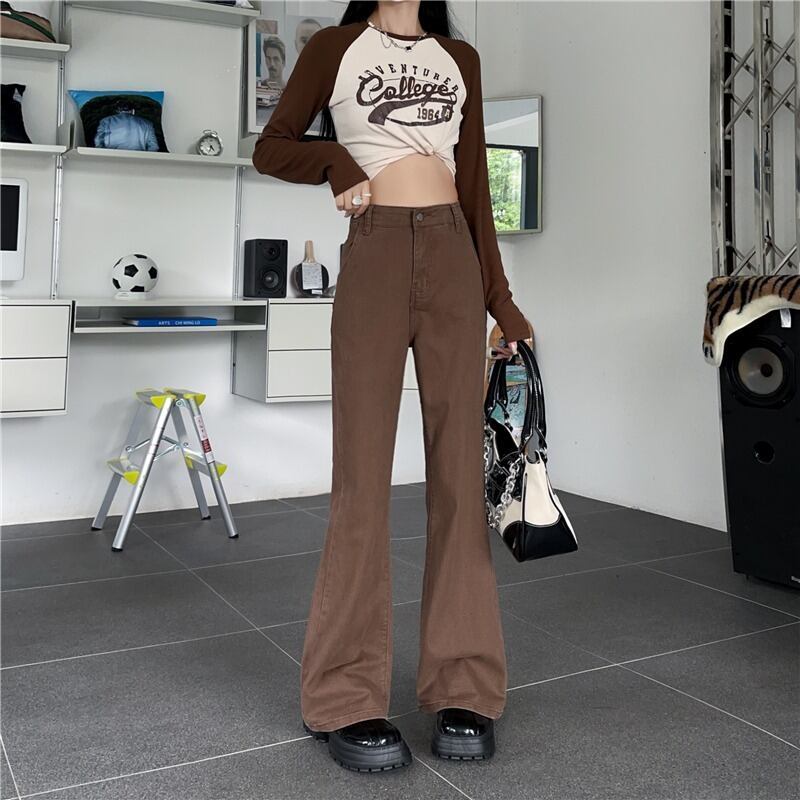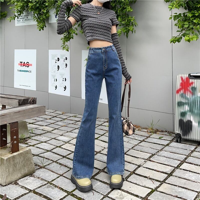 プラスサイズの婦人服 2023 トレンディな女性の夏の新しいスタイルの太った姉妹ハイウエスト自己修養痩身ストレッチデニムフレアパンツ ハイウェスト レッド 大きめサイズ サマー 夏物 8884150911326922