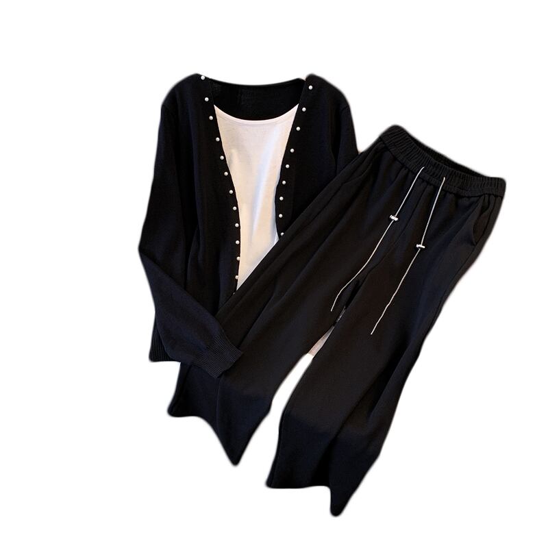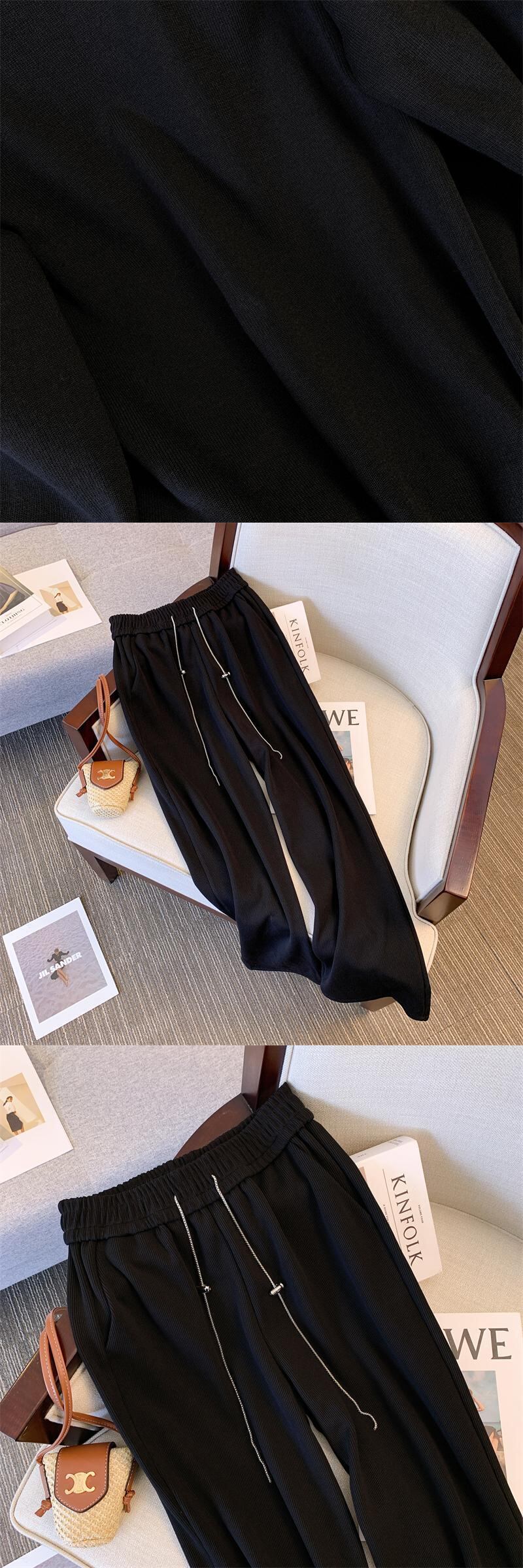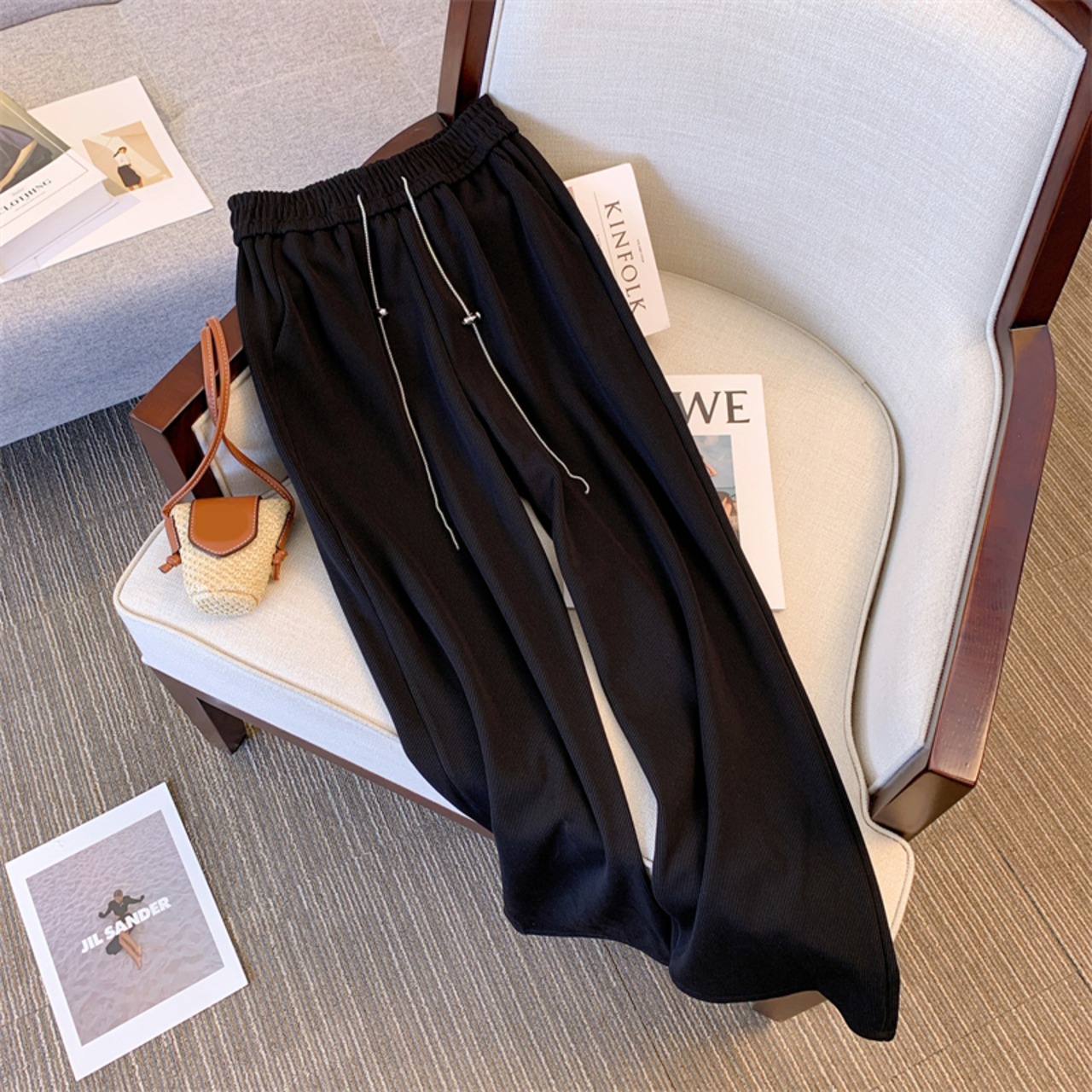プラスサイズの婦人服 2023 春の新しいファットシスターファッションラウンドネックセーターハイウエスト無地カジュアルパンツ 2 点セット ハイウェスト 大きめサイズ スプリング 春物 Oネック ソリッドカラー 8884157690302253