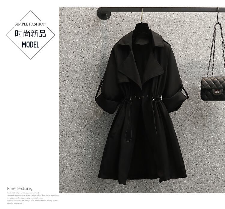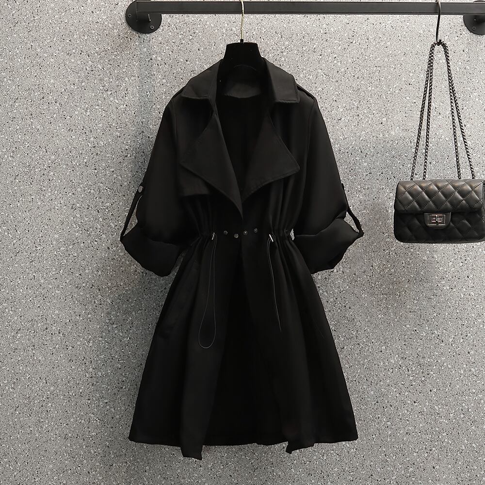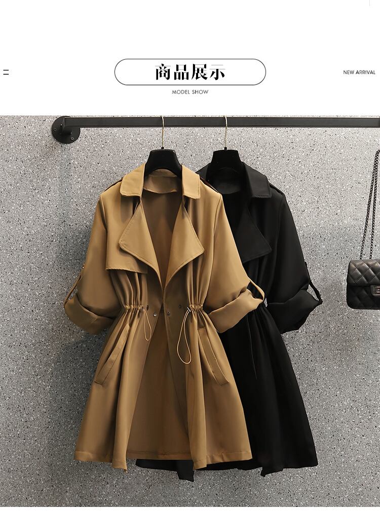 大きいサイズの婦人服 2023 春の新しいファッション巾着ウエスト ウエスト オールマッチ eign スタイル ミドル丈ウインドブレーカー ジャケット脂肪 大きめサイズ スプリング 春物 8884120221235132