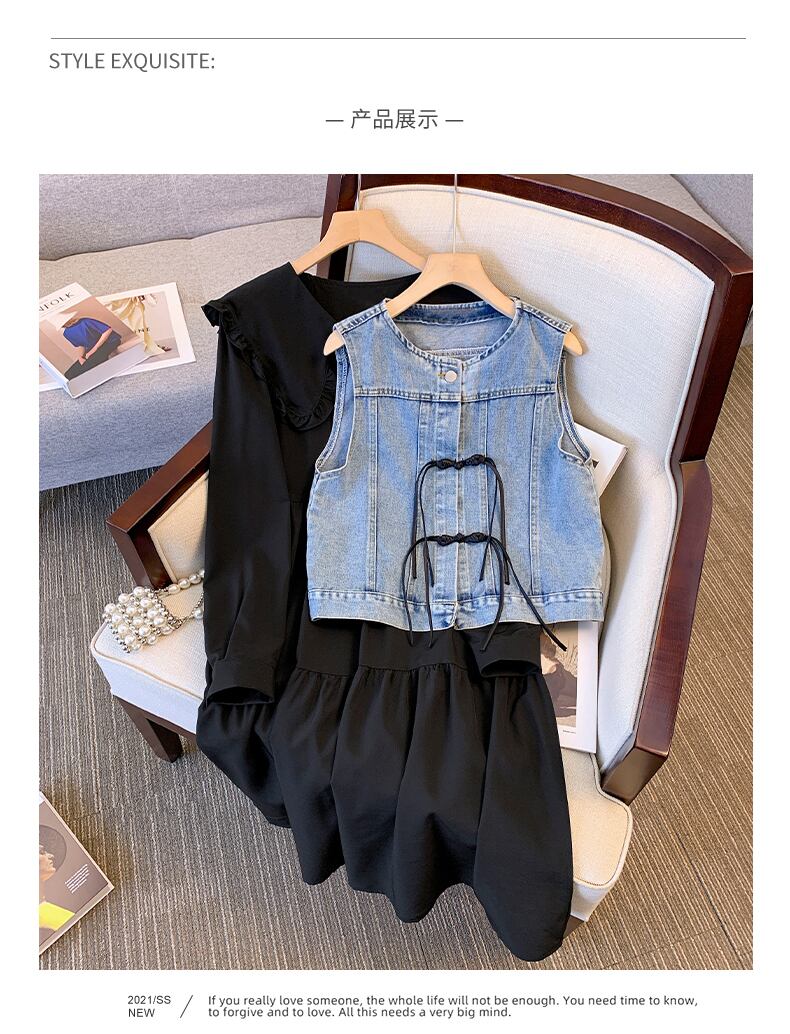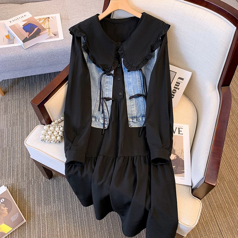 大きいサイズの婦人服 2023 ファット シスター 春の新しい時代を和らげる人形の襟の肉のカバー ドレス デニム ジャケット 2 点セット 大きめサイズ スプリング 春物 8884155759107639
