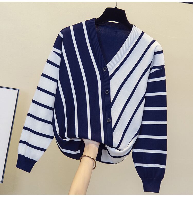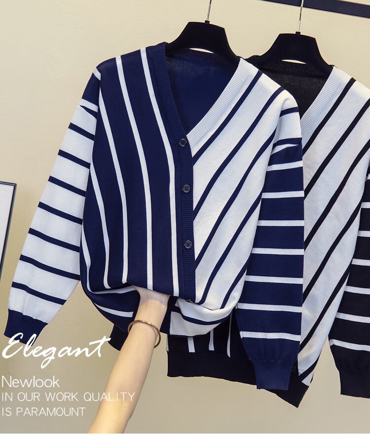 プラスサイズの婦人服 2023 トレンディな女性の春の新しい太った姉妹 eign スタイル薄いルーズセーター年齢を減らすストライプのセーターの女性 大きめサイズ スプリング 春物 8884111272543778