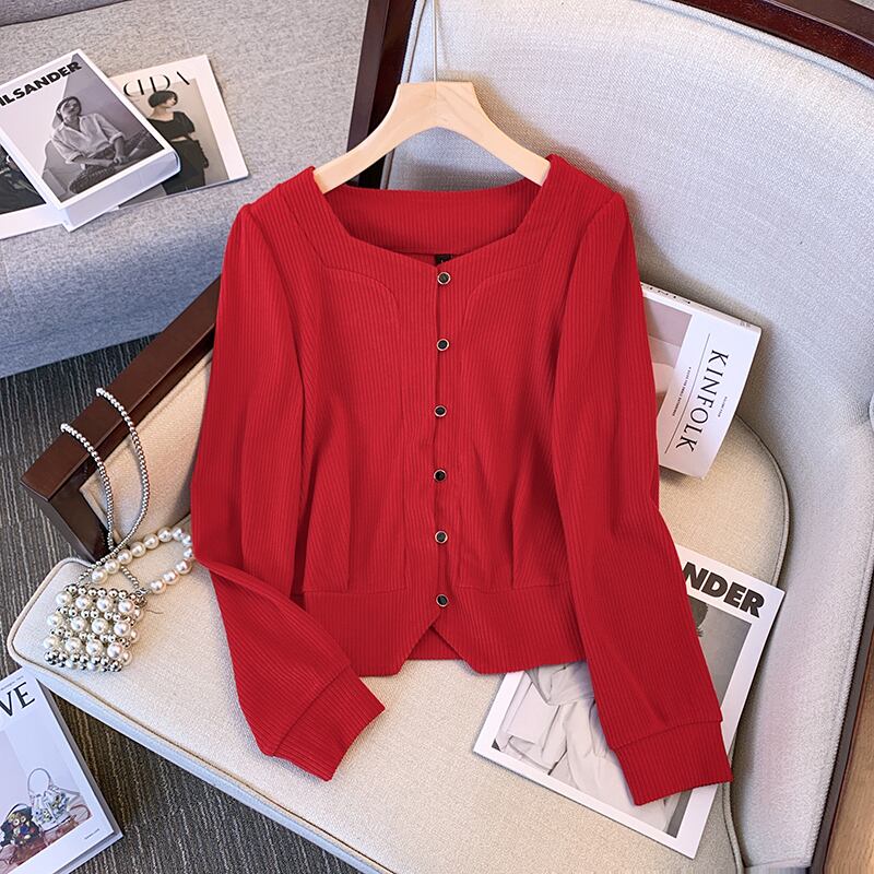 プラスサイズの婦人服 2023 ファットシスター春の新ファッションオールマッチ痩身老化底入れシャツ長袖ニットトップ ロング 大きめサイズ スプリング 春物 8884168328093167