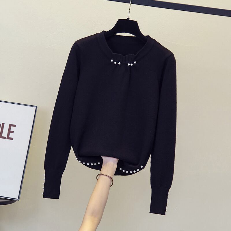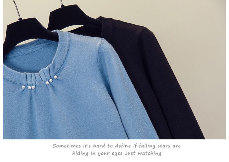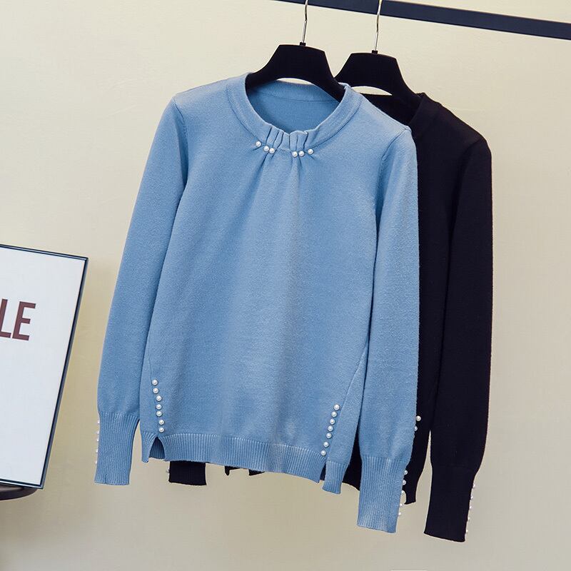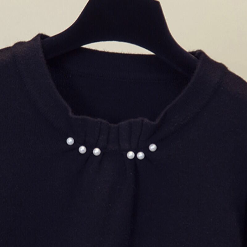大きいサイズの婦人服 2023 春の新しいファット シスター プリーツ ビーズ長袖ルーズ デザイン無地セーター ロング 大きめサイズ スプリング 春物 ソリッドカラー 8884160637339865