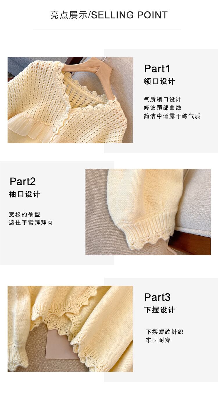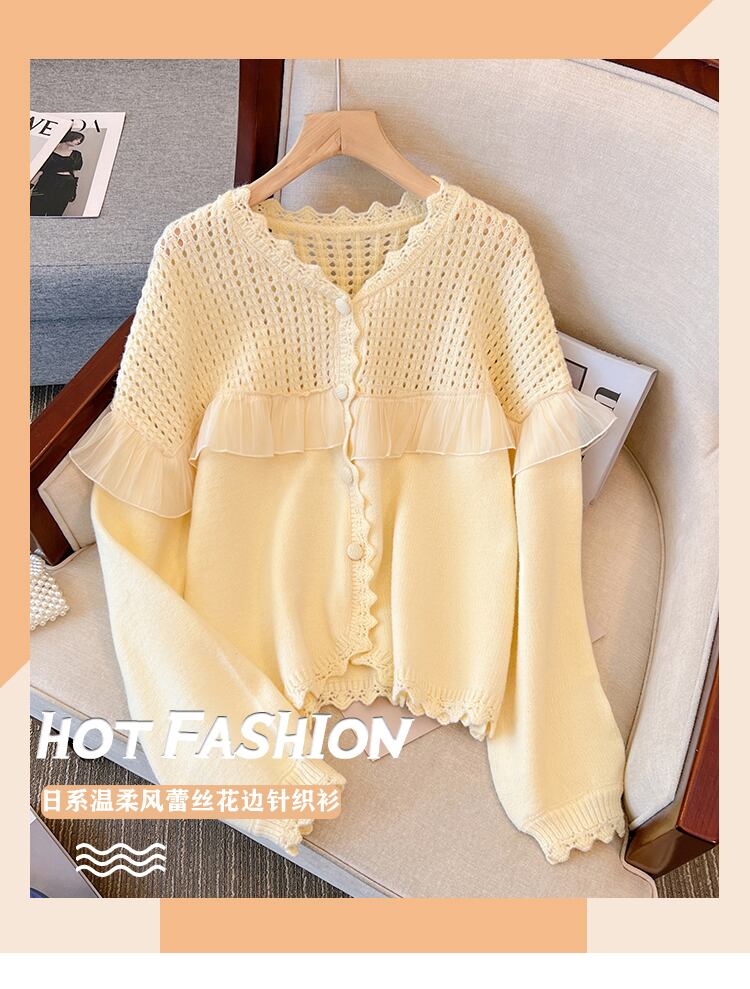 プラスサイズの婦人服 2023 春の新しいスタイルのファットシスタールーズで薄いレースの襟中空フリルカーディガンニットセーター 大きめサイズ スプリング 春物 8884195414730686