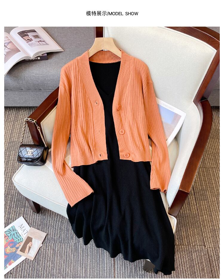 プラスサイズの婦人服 2023 トレンディな女性の春の新しいファットシスター eign スタイルの年齢を減らすオールマッチニットセーターベストスカートツーピーススーツ 大きめサイズ スプリング 春物 8884192855185122