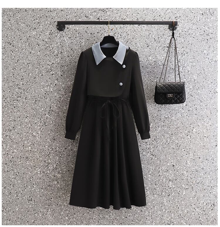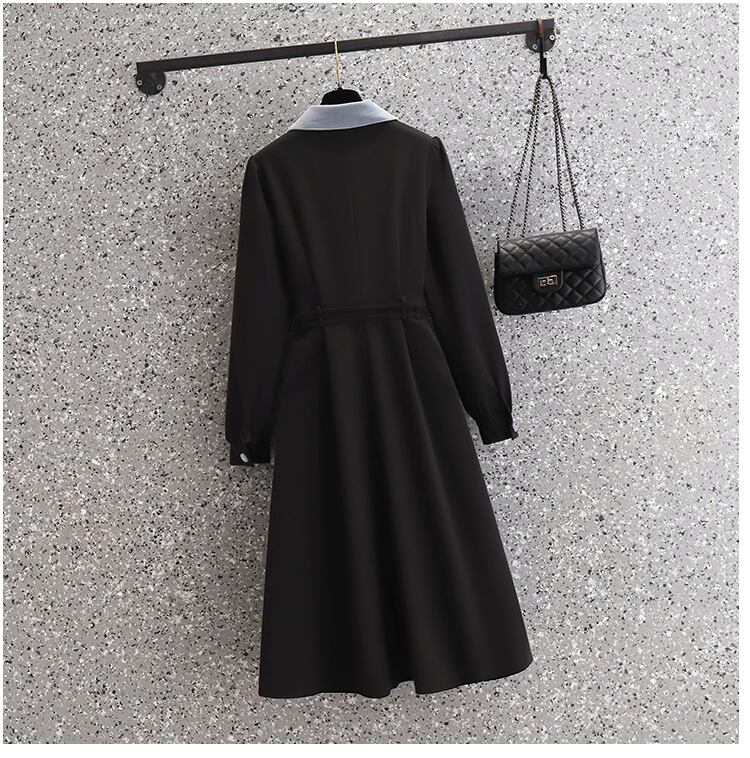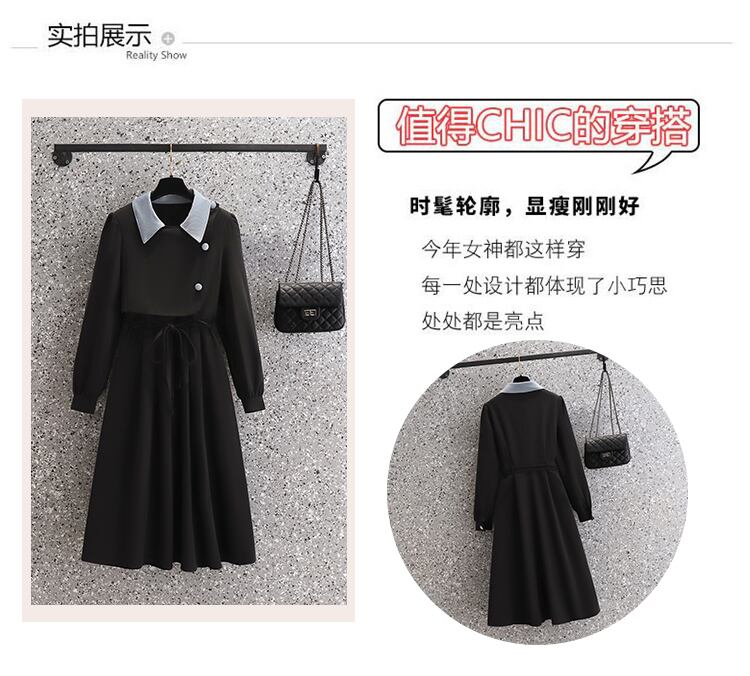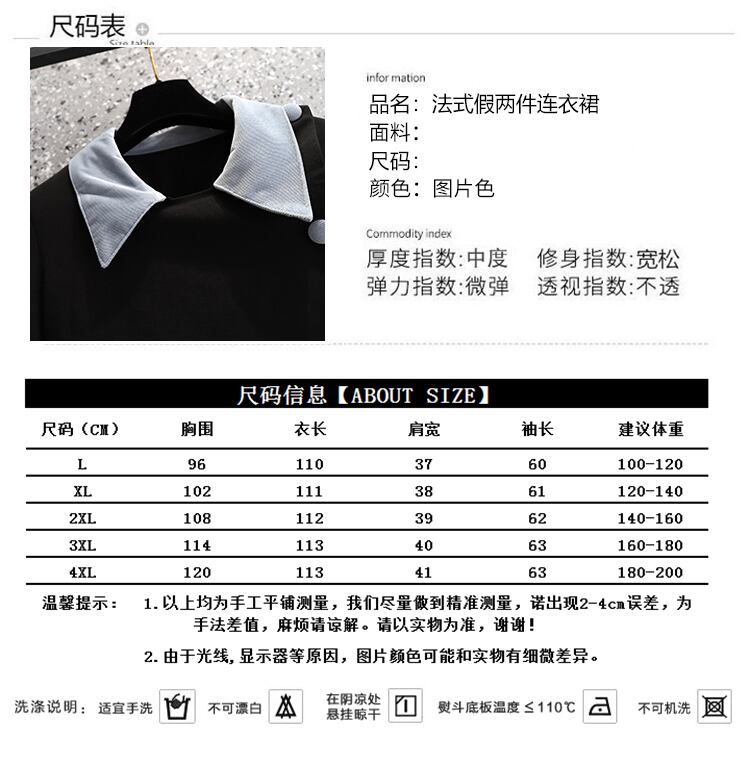 プラスサイズの婦人服 2023 春の新しいファットシスターフェイク二枚レトロなデザインセンスウエストスプライシングドレス女性 大きめサイズ スプリング 春物 8884151308516817
