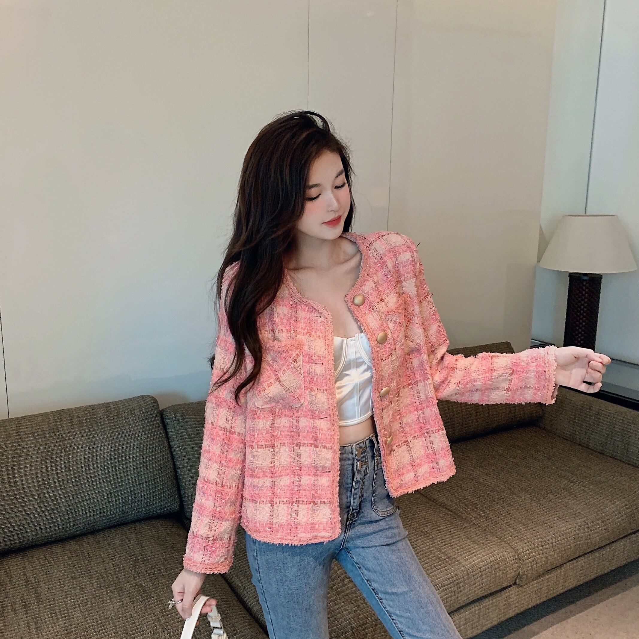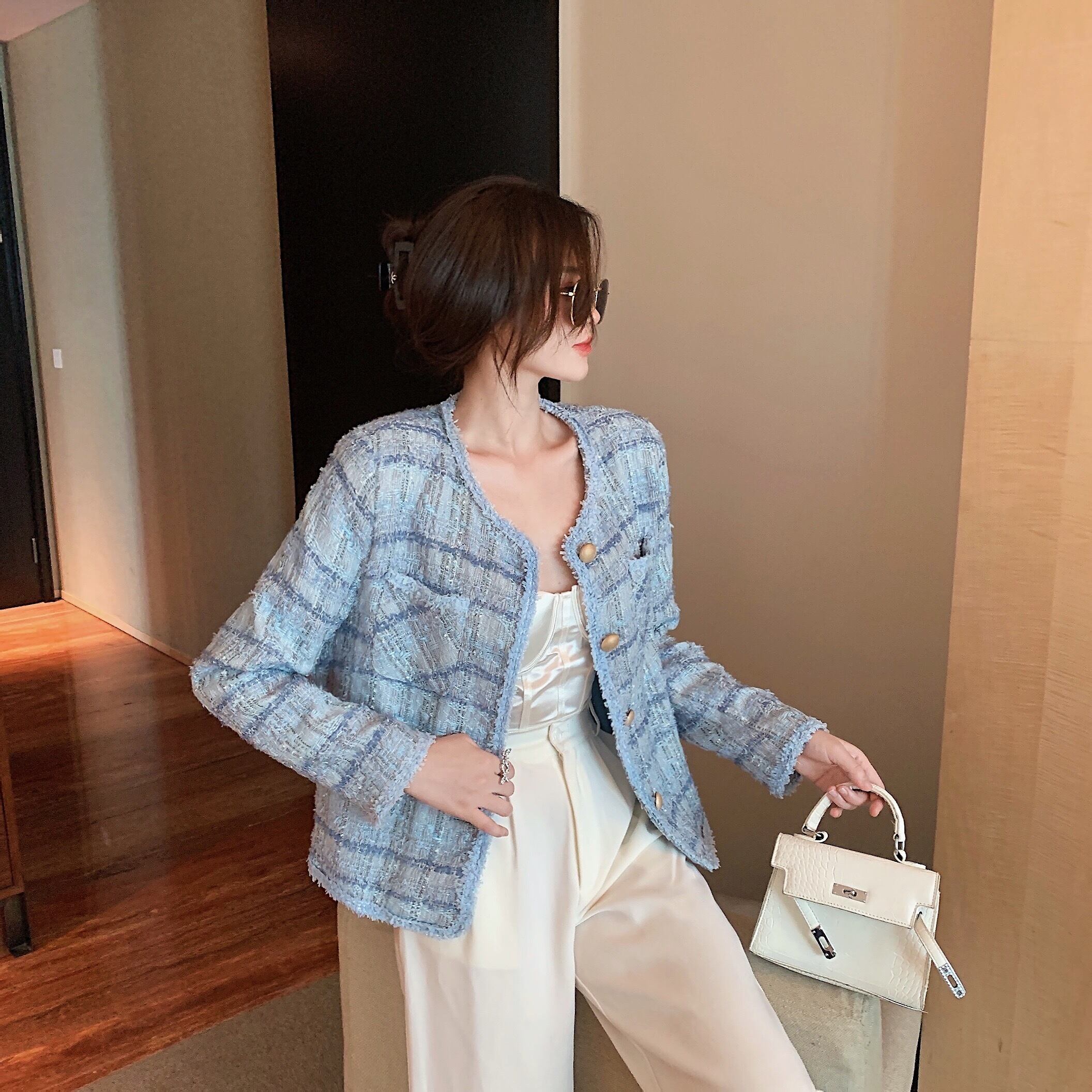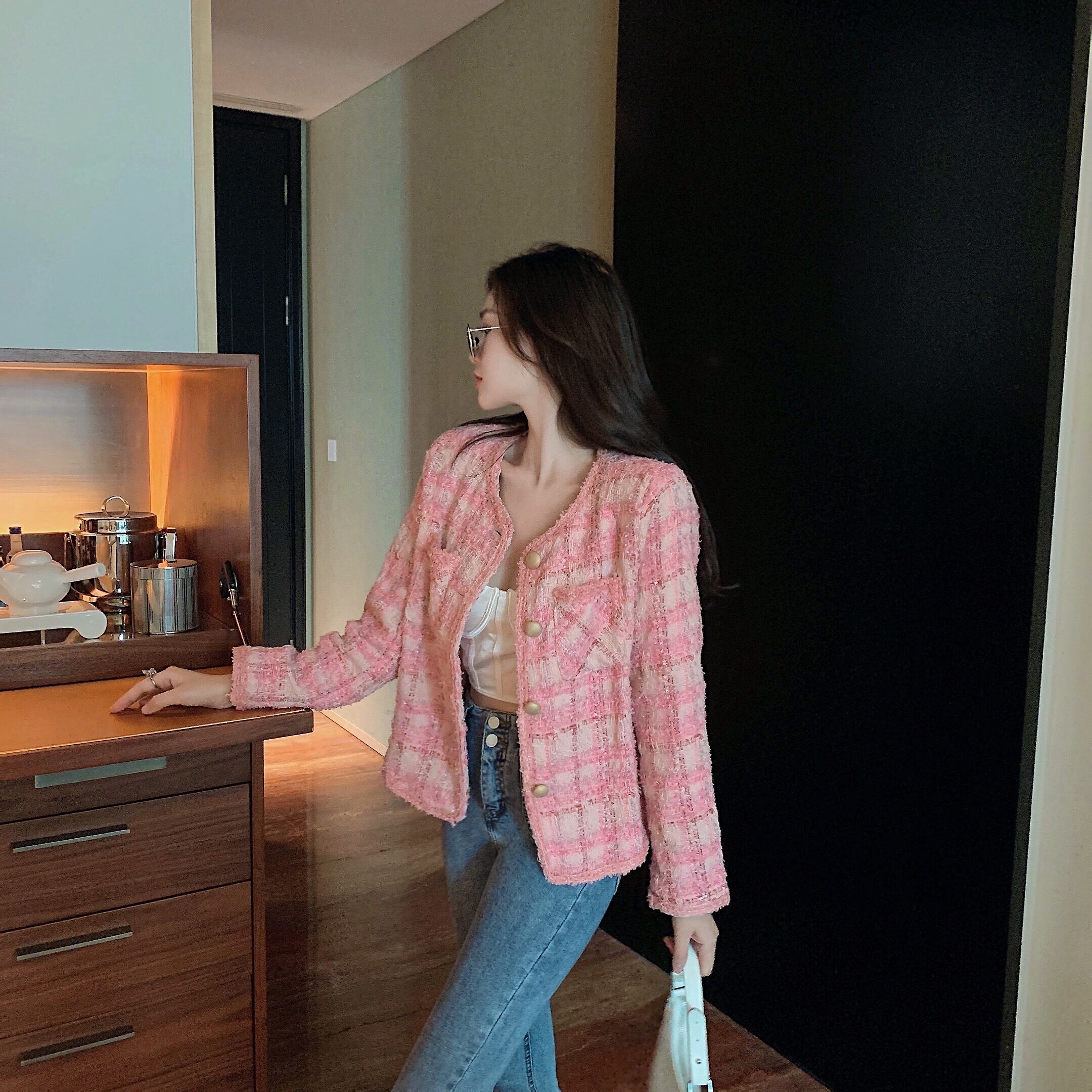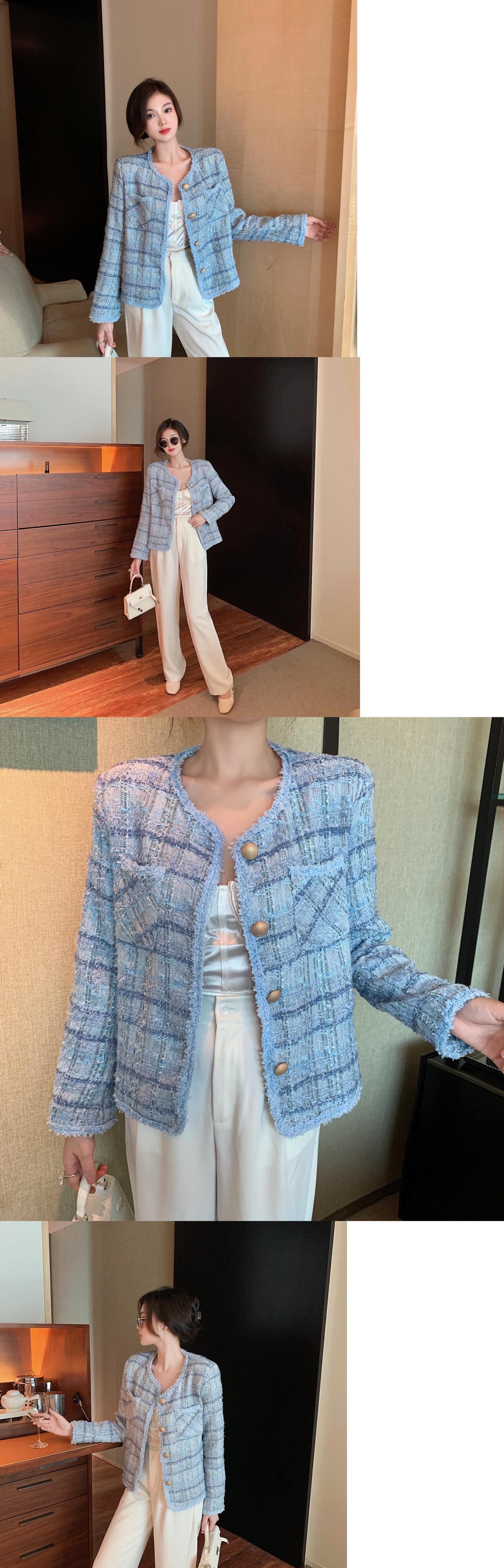プラスサイズの婦人服2023ファットシスター春の新バージョン痩身オールマッチツイードバージョンレトロカーディガンジャケット 大きめサイズ スプリング 春物 8884164267384330