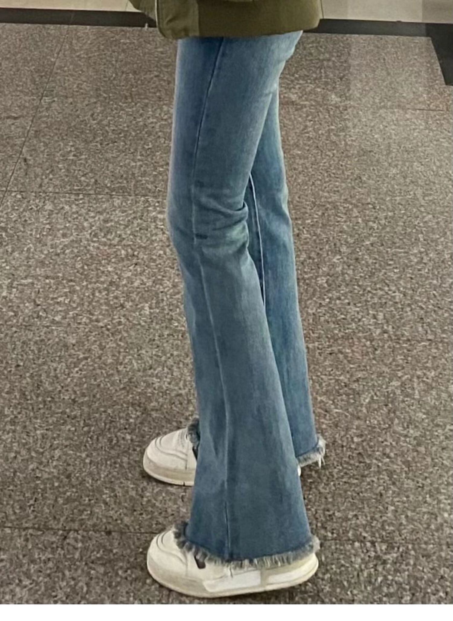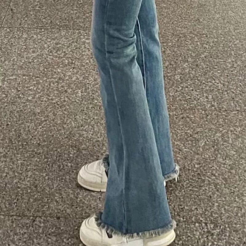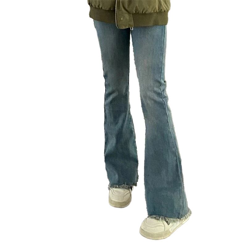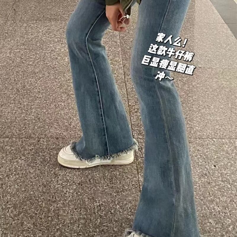 プラスサイズの婦人服 2023 ファットシスター春の新ファッションジーンズ小群衆ハイウエストスリムモップ床マイクロフレアパンツ ハイウェスト レッド 大きめサイズ スプリング 春物 8884145244199275