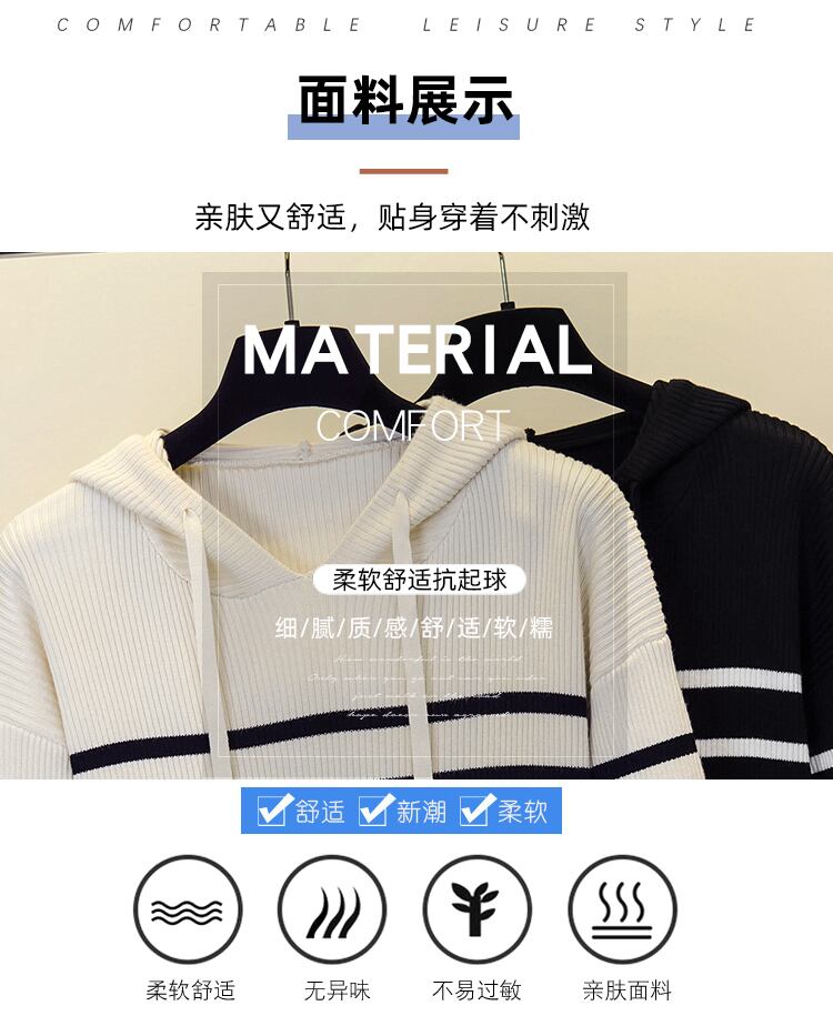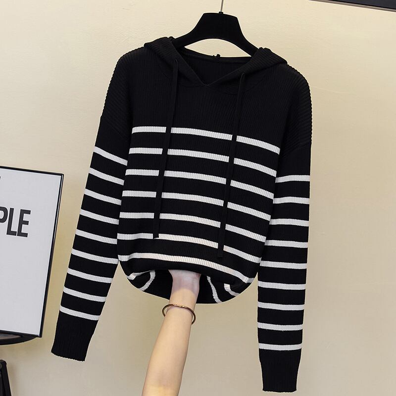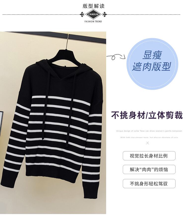 プラスサイズの婦人服 2023 春の新しいファットシスター eign スタイルフード付きルーススリム巾着カジュアルストライプセーター 大きめサイズ スプリング 春物 8884165383598677