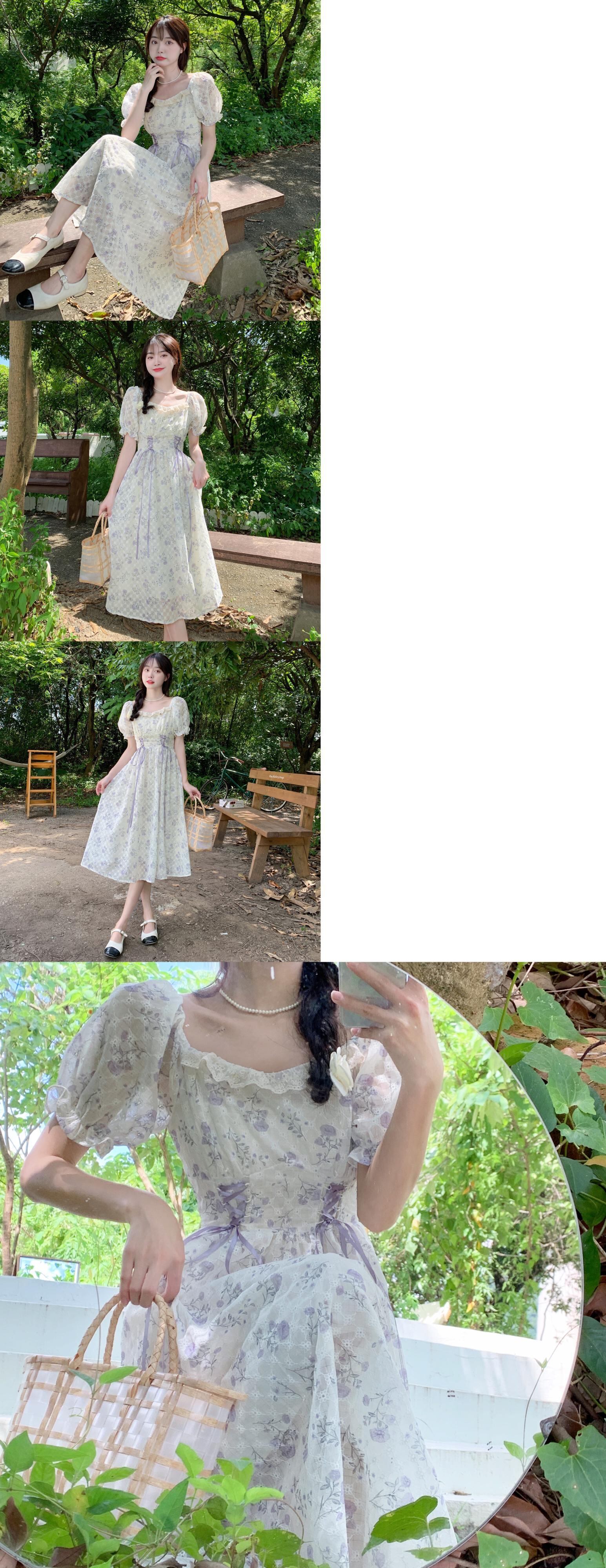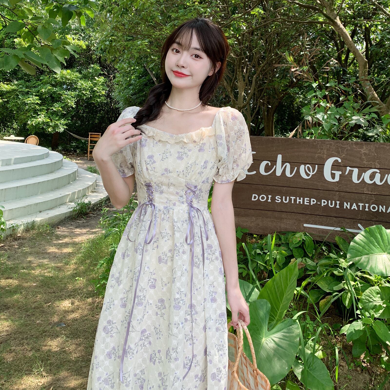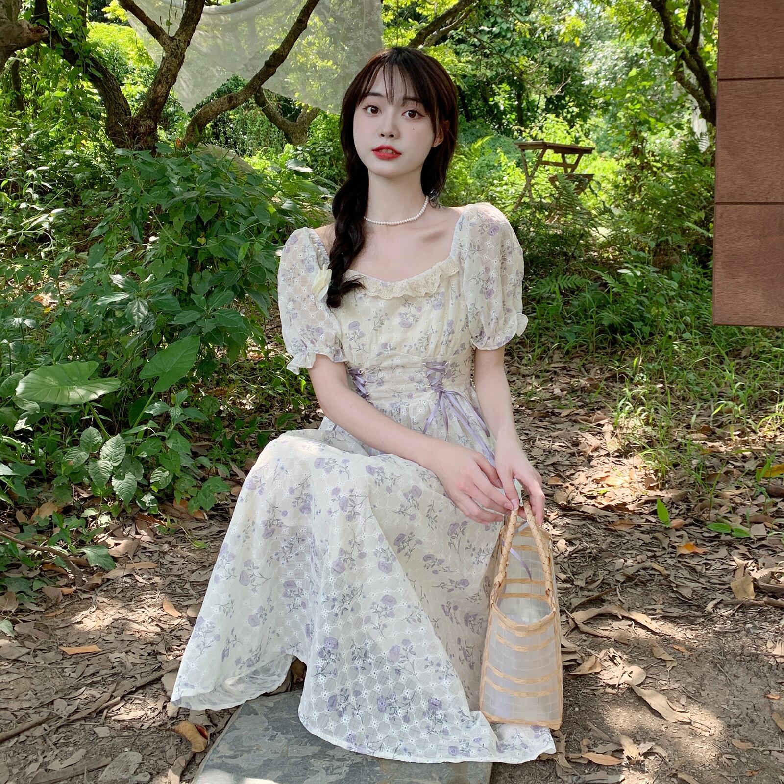 プラスサイズの婦人服 2023 ファットシスター夏新パープルティーブレイクフランスのレトロな妖精のドレス花柄のドレス 大きめサイズ サマー 夏物 8884169772171853