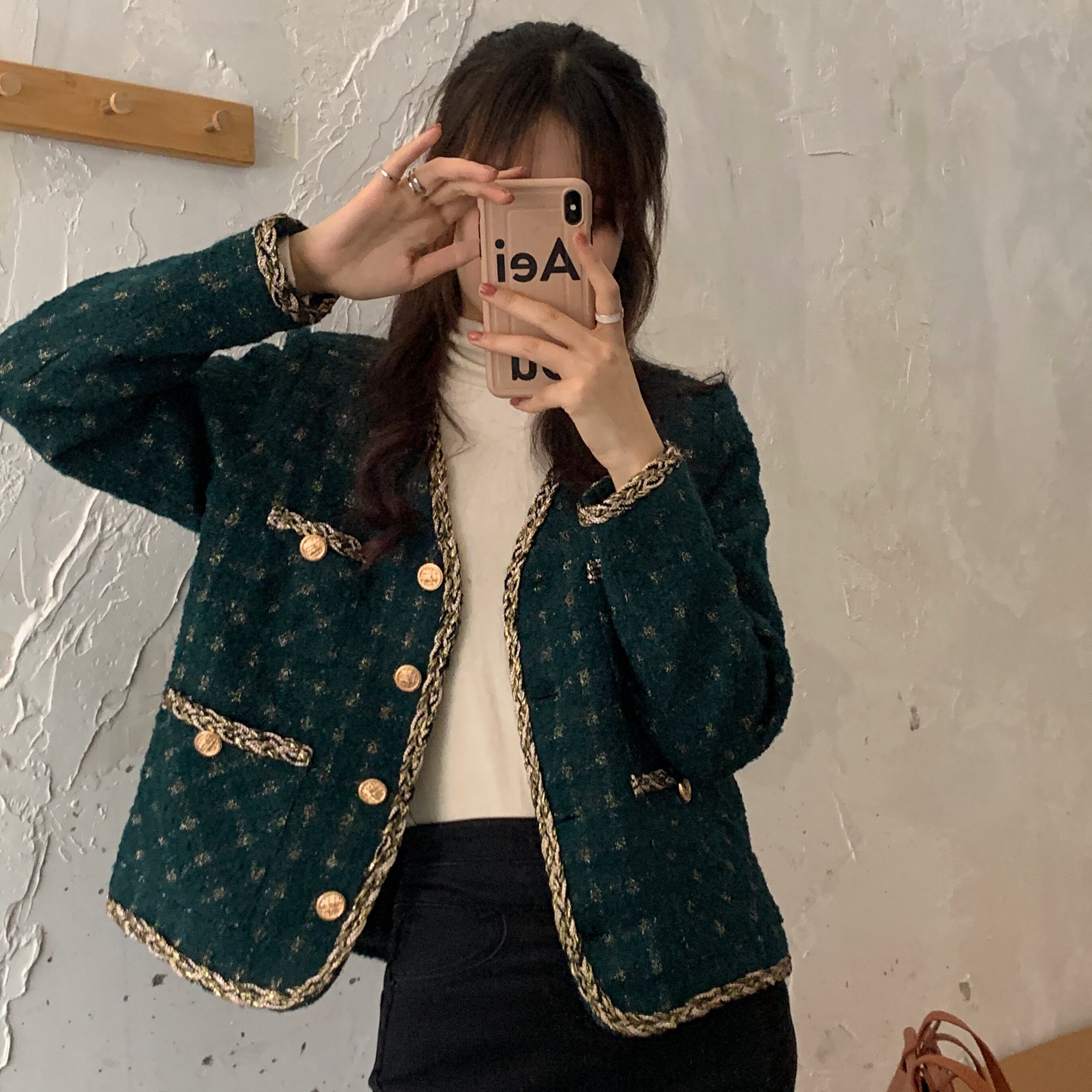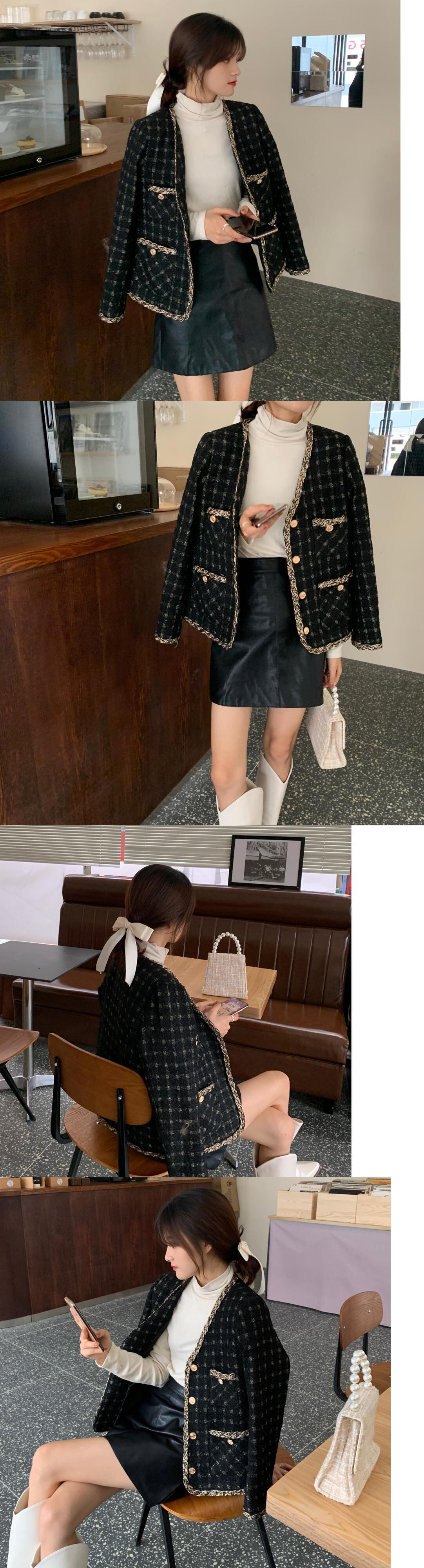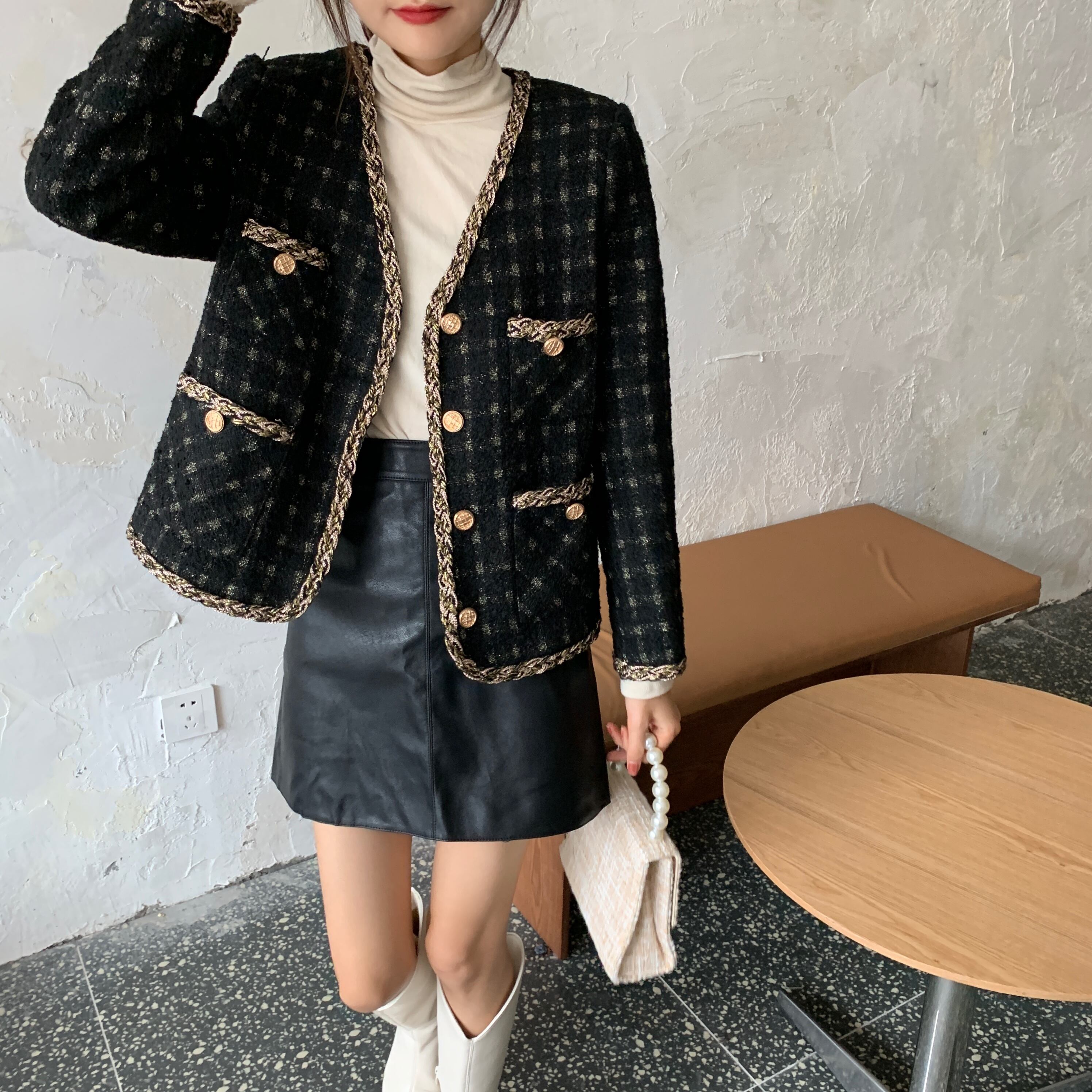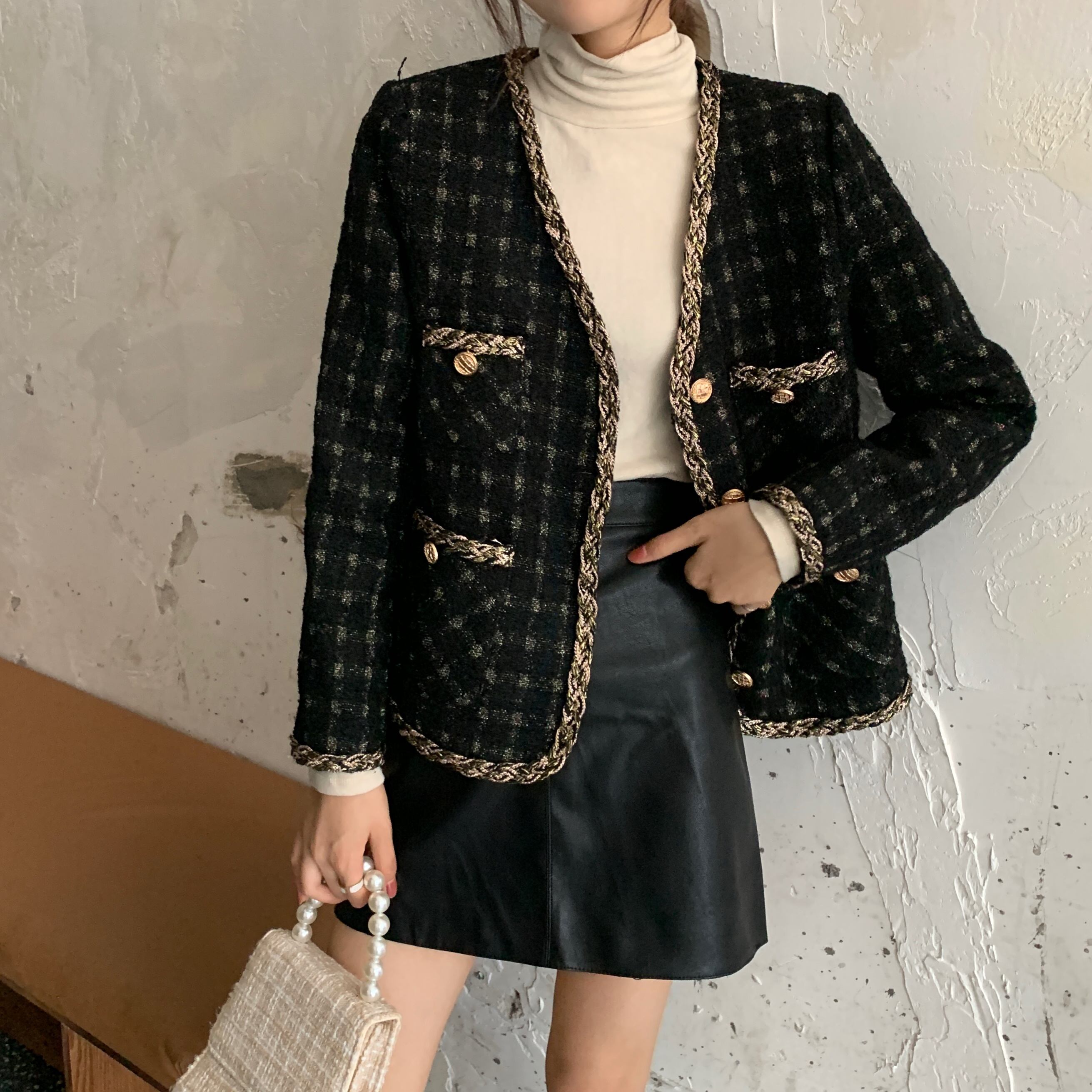 プラスサイズの婦人服 2023 ファットシスター春の新しいツイードコートバージョン V ネックシングルブレスト気質カーディガン女性 大きめサイズ スプリング 春物 Vネック 8884164085096833