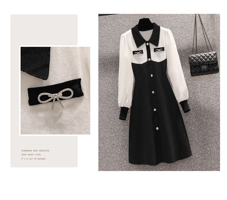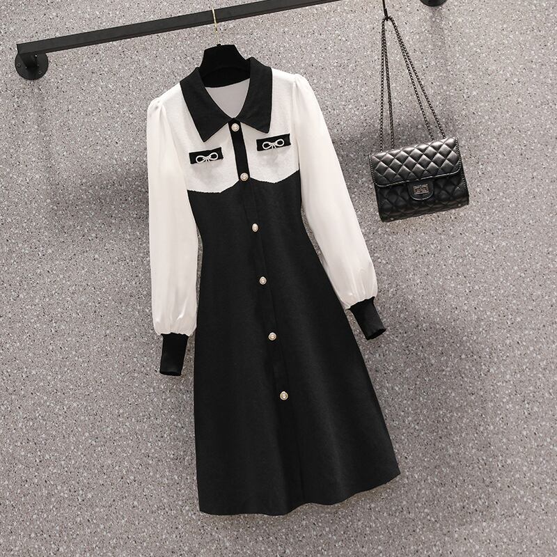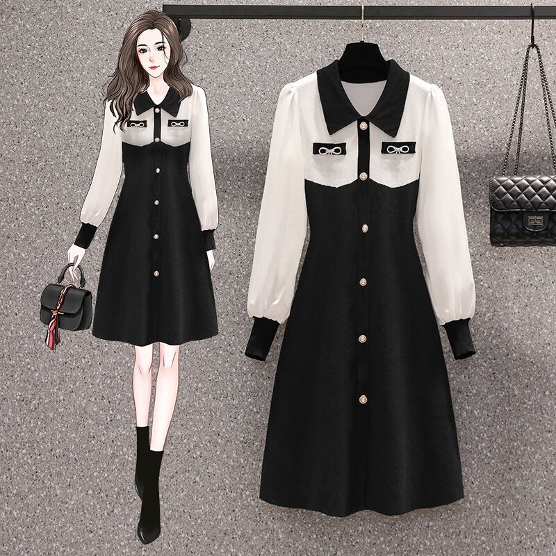 大きいサイズの婦人服 2023 春の新しい年齢を減らすフェイク ツー ピース薄いステッチと薄いニット ドレス ファット シスターズ 大きめサイズ スプリング 春物 8884158981384734