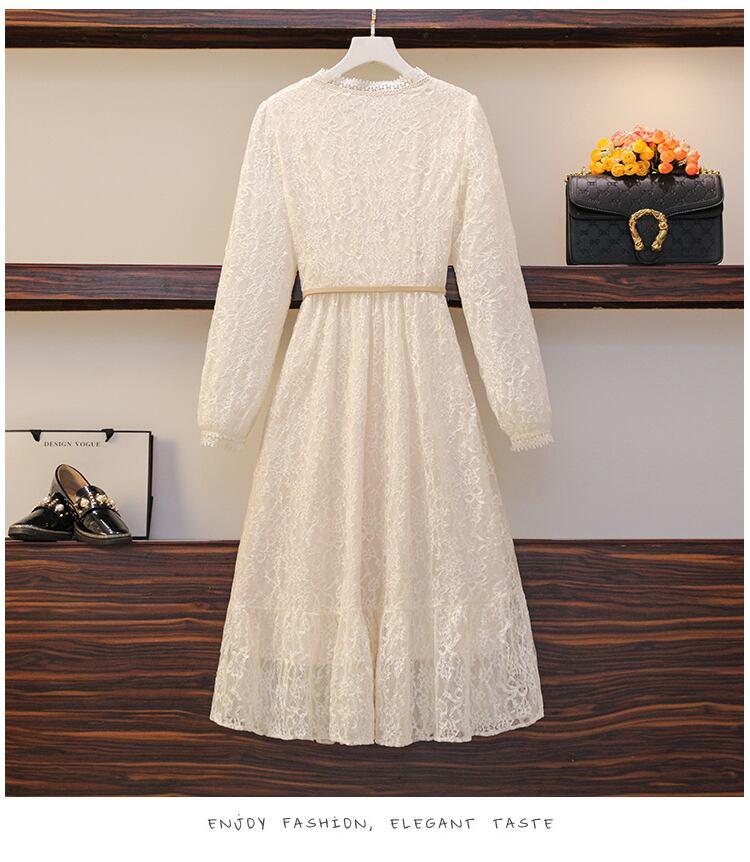 プラスサイズの婦人服 2023 春の新スタイル脂肪姉妹ファッション薄いレースのステッチウエスト気質フレンチドレス 大きめサイズ スプリング 春物 8884193820828512