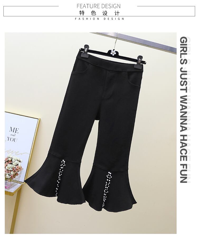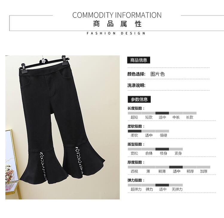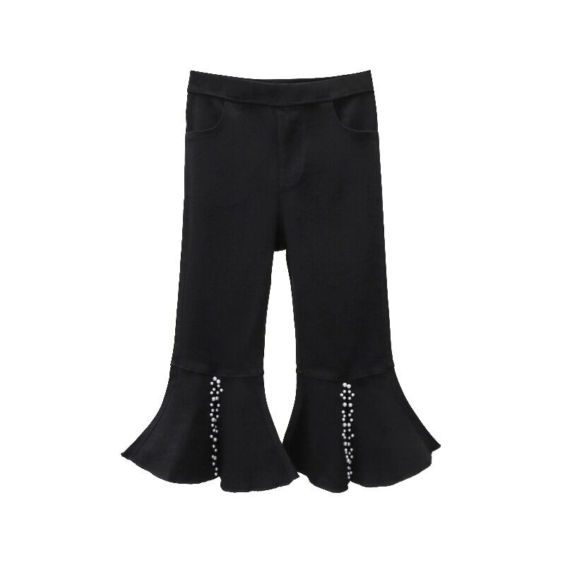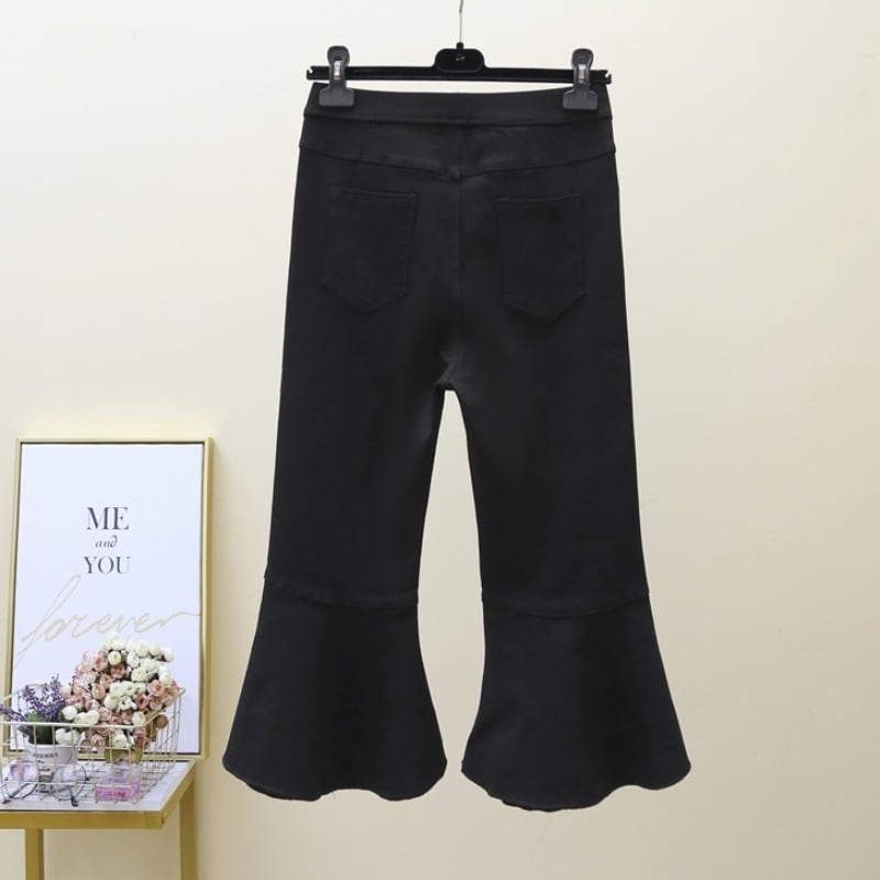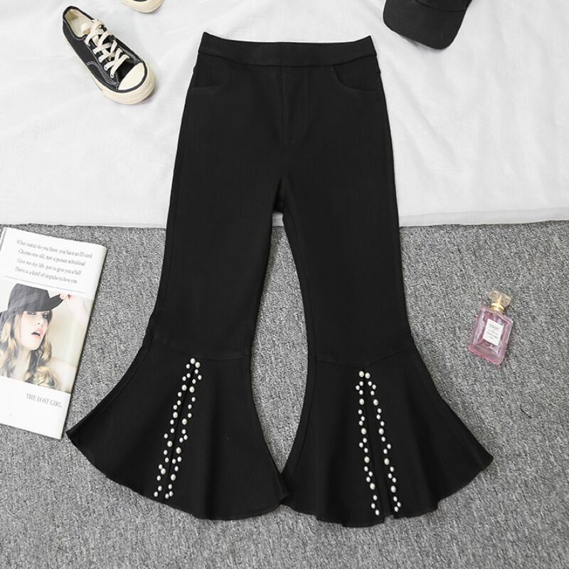 プラスサイズの婦人服 2023 夏の新しいファットシスターハイウエストの気質年齢を減らすビーズ弾性スリットマイクロボアパンツ女性 エラスティック 伸縮 大きめサイズ サマー 夏物 8884140345211407
