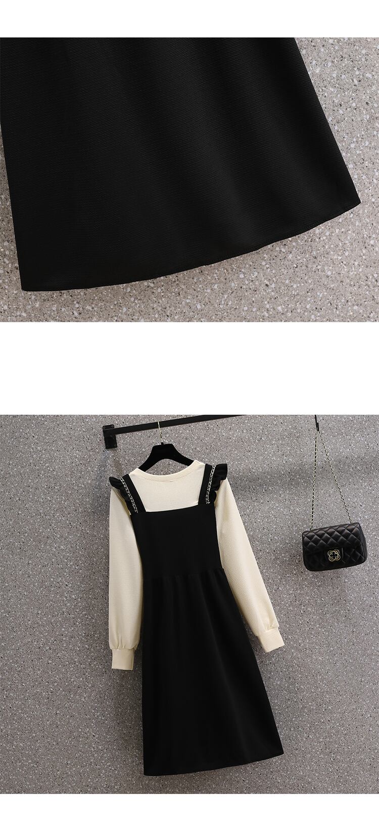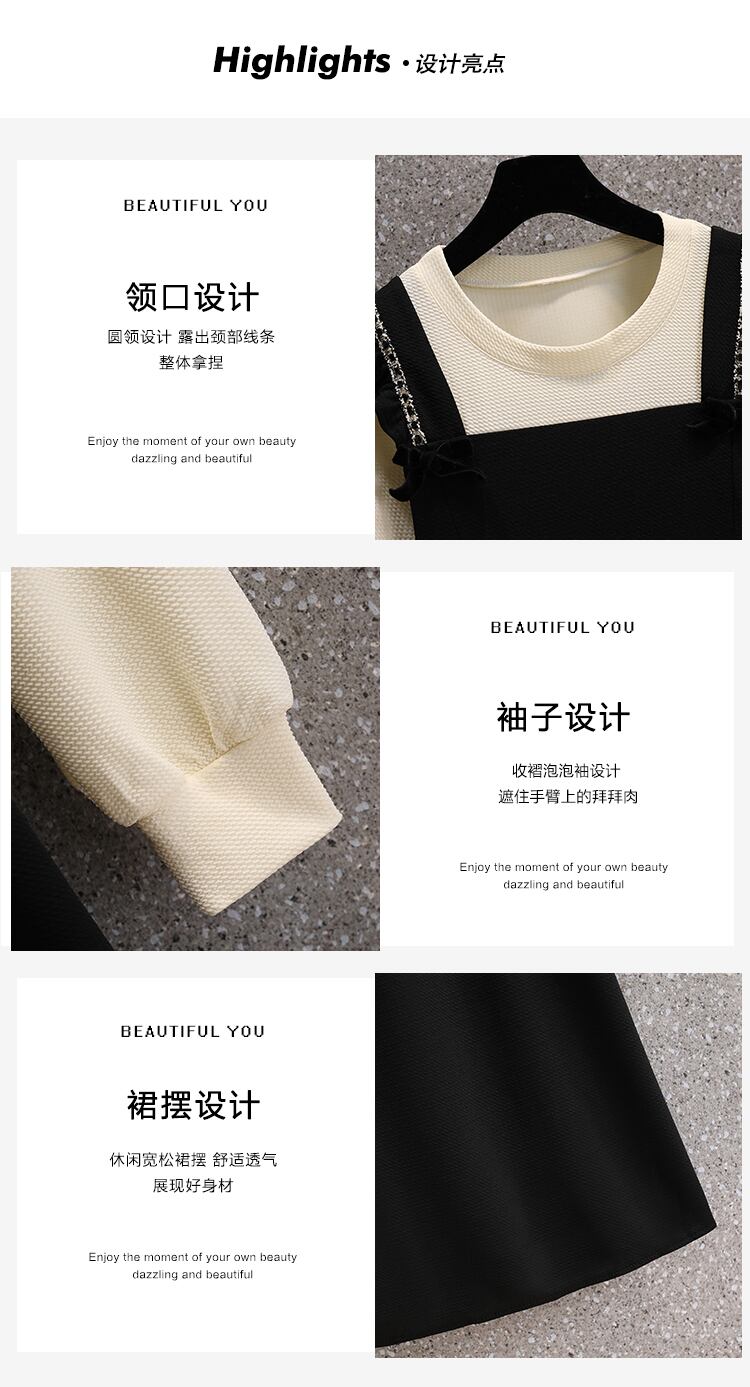 プラスサイズの婦人服 2023 ファットシスター春の新フレンチデザインウエスト痩身フェイクツーピースドレス女性 大きめサイズ スプリング 春物 8884197756627388