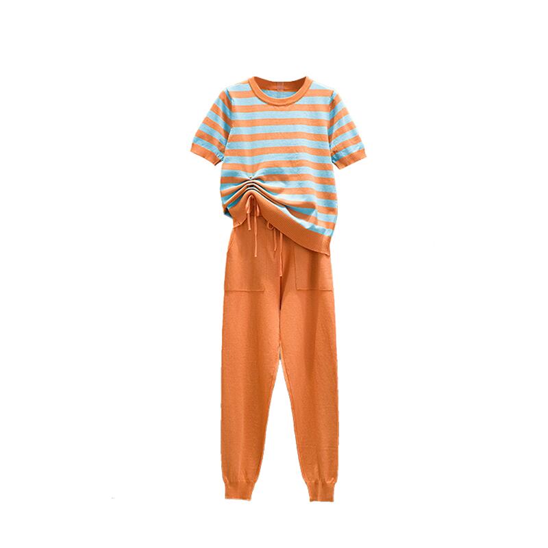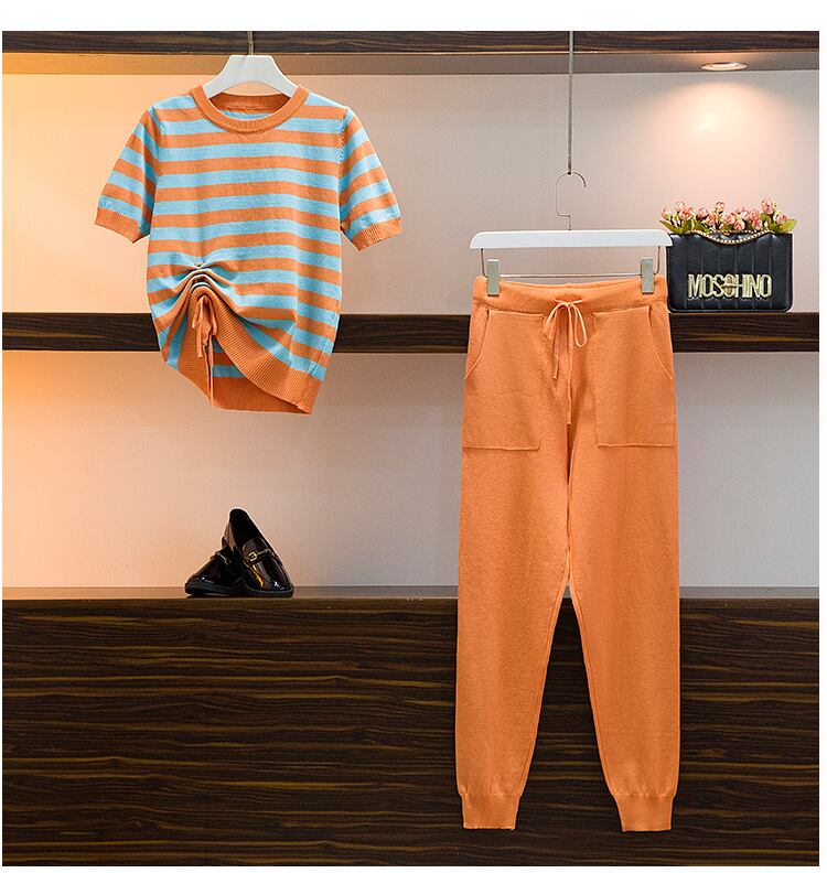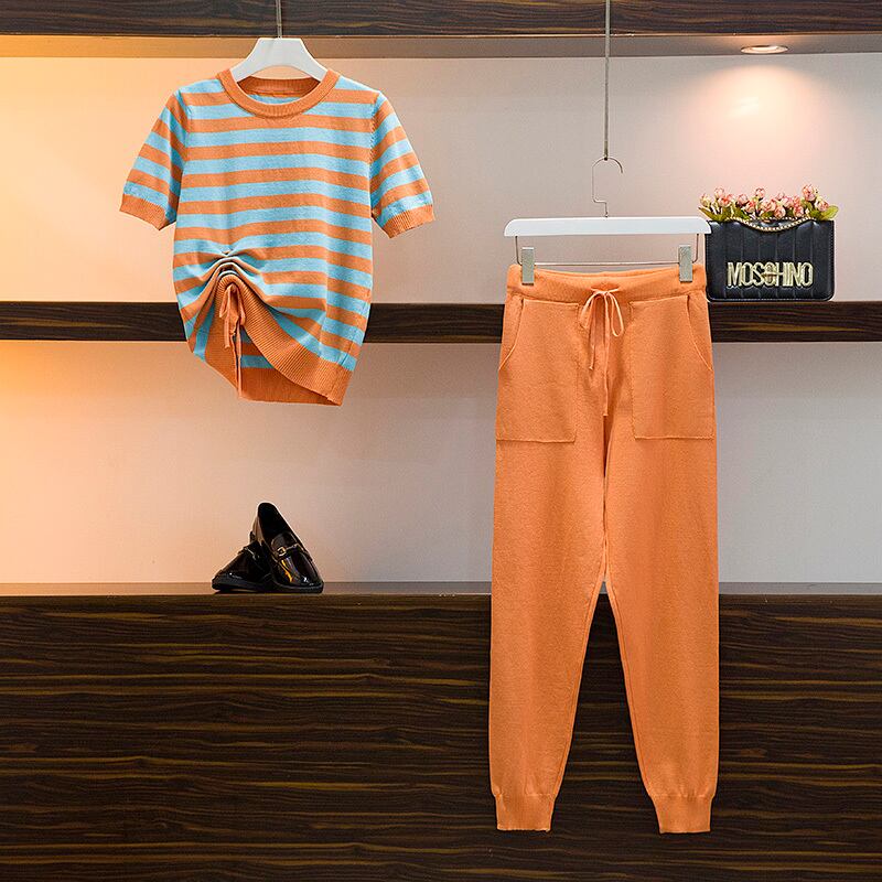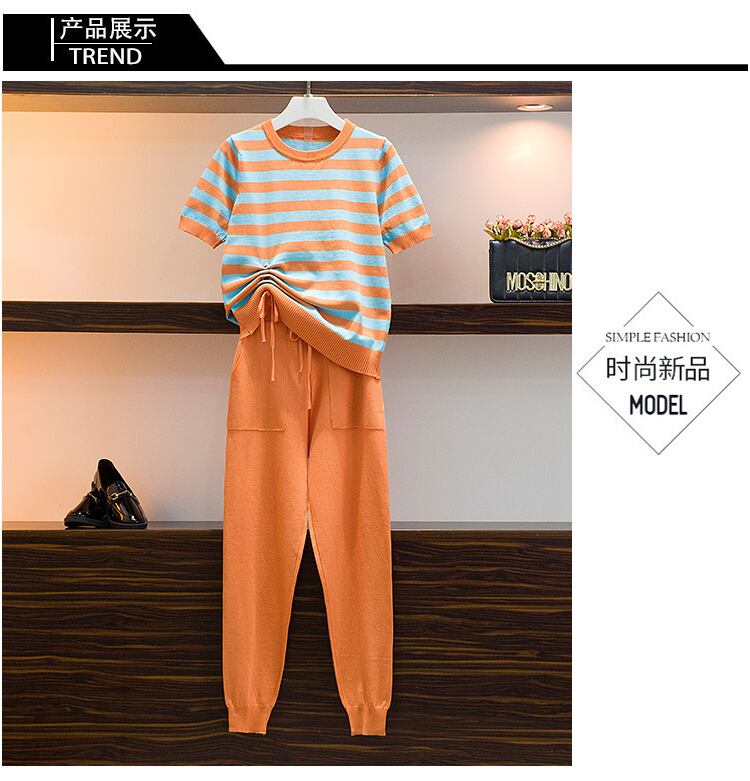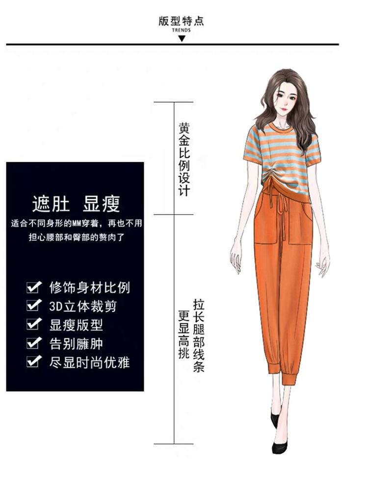 プラスサイズの婦人服 2023 ファットシスター夏新作スリム巾着半袖 Tシャツハーレムパンツカジュアル 2 点セット 大きめサイズ サマー 夏物 8884111771015964