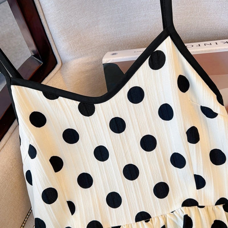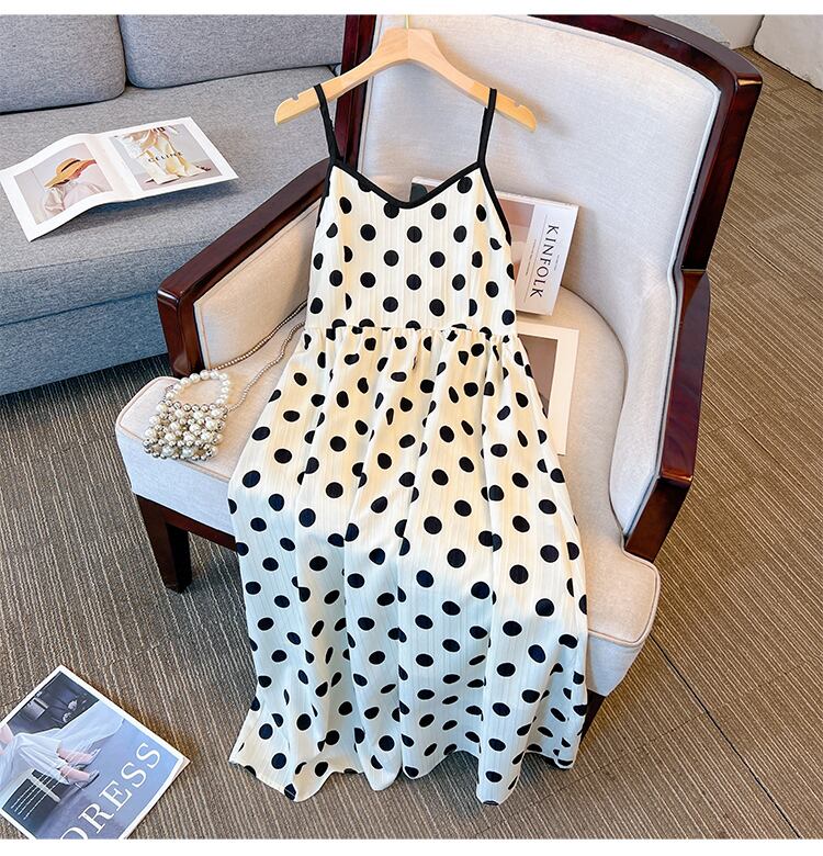 プラスサイズの婦人服 2023 夏新新脂肪姉妹年齢を減らすカーディガントップ水玉サスペンダードレス 2 点セット 大きめサイズ 8884136203746108