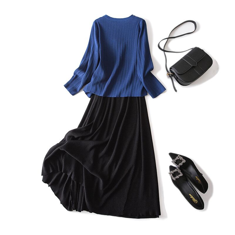 色:ブルーカーディガン,ブラックカーディガン,スカート,青いツーピース,黒のツーピース