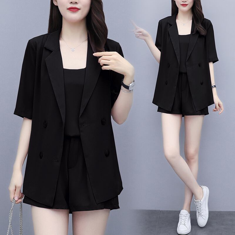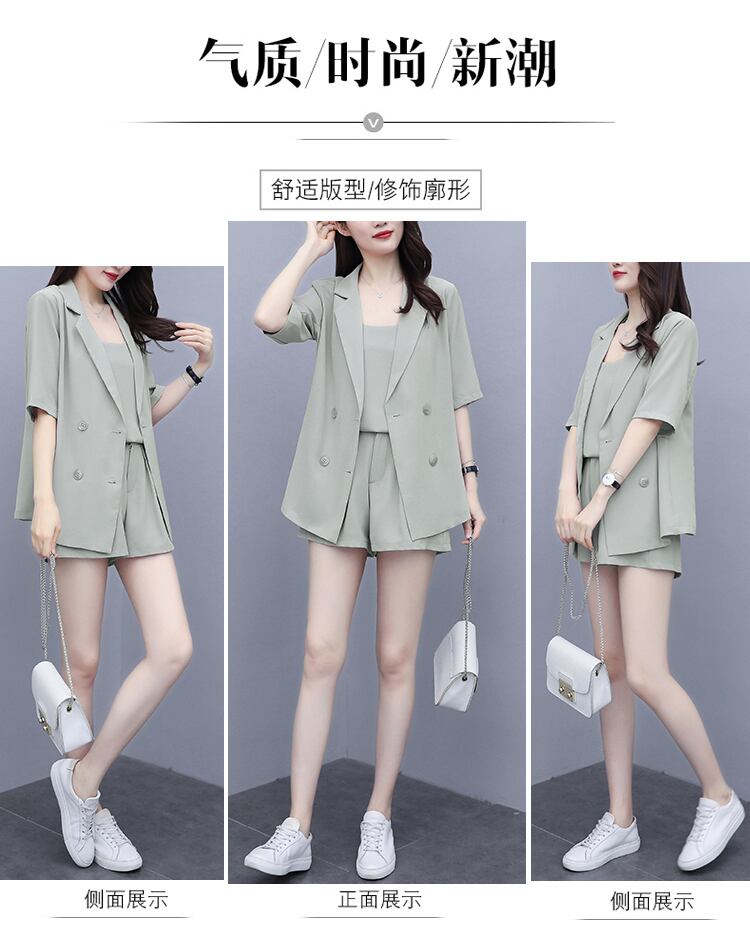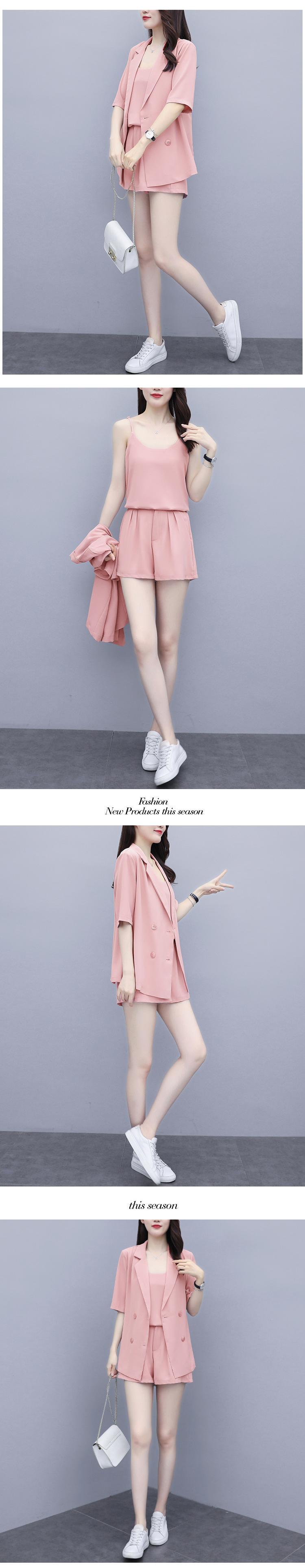 プラスサイズの婦人服 2023 ファットシスター夏の新しいファッションショーツサスペンダースーツスタイルのスリーピーススーツ 大きめサイズ サマー 夏物 ブルマー 8884170441253595