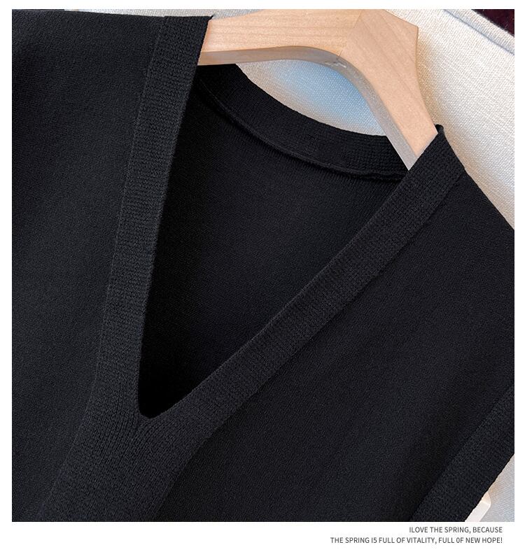 大きいサイズの婦人服 2023 トレンディな女性の春の新しい太った姉妹ファッショナブルなフレンチ ニット シャツ ベスト ドレス 2 点セット 大きめサイズ スプリング 春物 8884126961622975