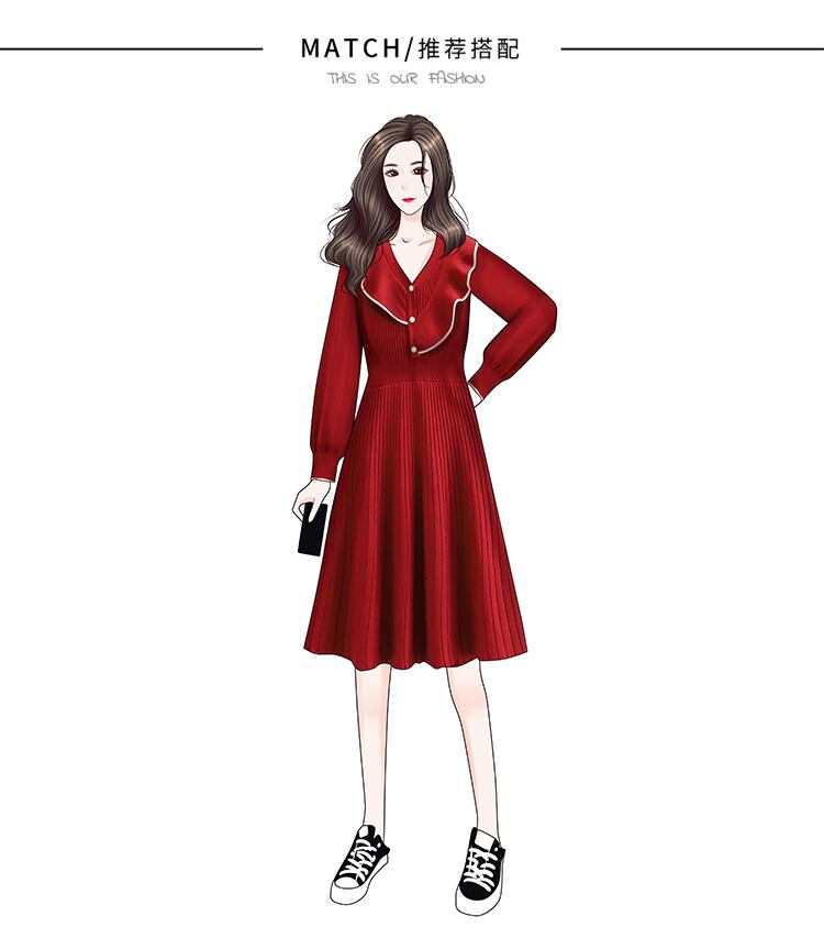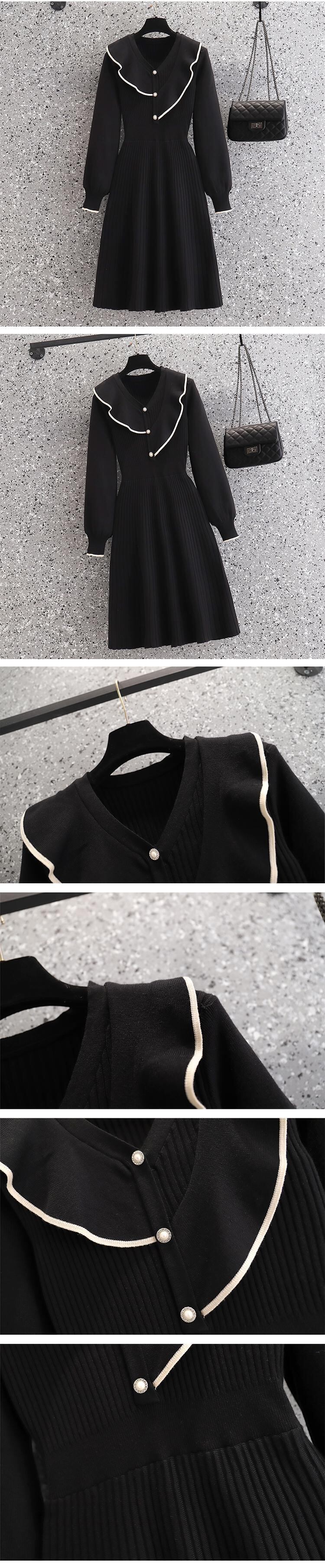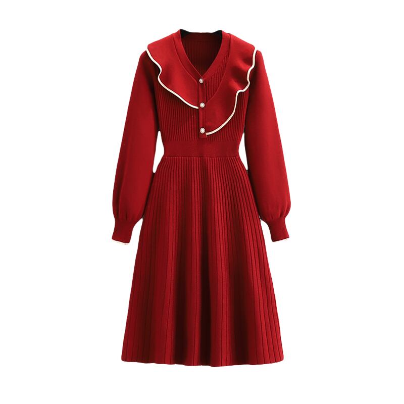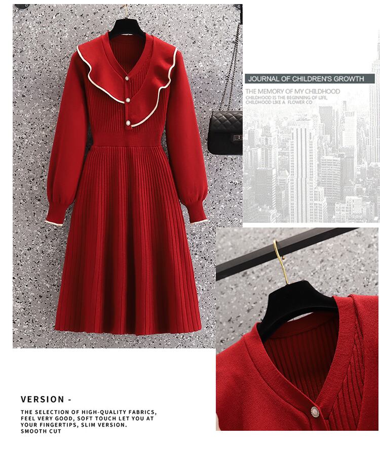 大きいサイズの婦人服 2023 ファット シスター 春の新しいファッション痩身と年齢を減らすフリル ウエスタン スタイル ニット ドレス 大きめサイズ スプリング 春物 8884196109503369