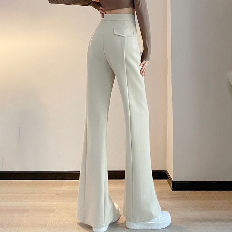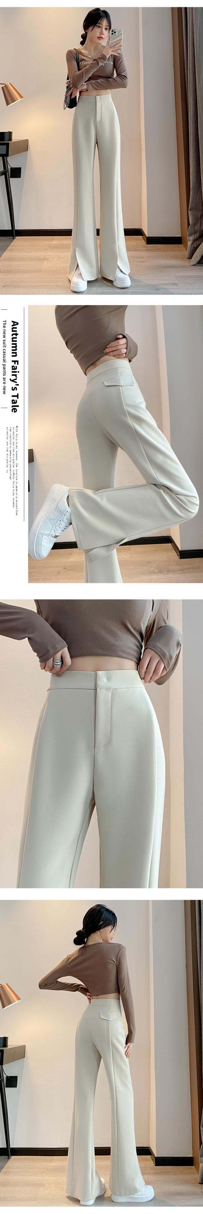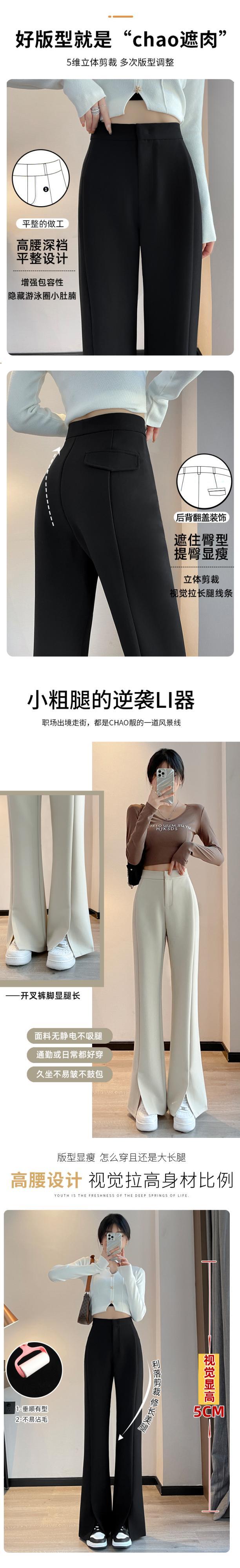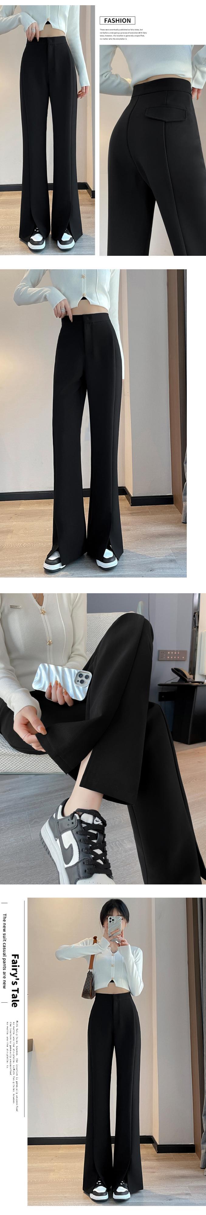 プラスサイズの婦人服 2023 トレンディな女性の春の新しいファットシスタースリットスーツハイウエストナローバージョンストレートチューブフロアモップマイクロブーツパンツ女性 ハイウェスト 大きめサイズ スプリング 春物 8884169876891903