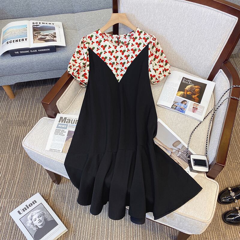 プラスサイズの婦人服 2023 トレンディな女性の夏の新しいファットシスターフローラルスプライシングフィッシュテールポケットスプライシングファッションドレス 大きめサイズ サマー 夏物 花柄 8884196017772662