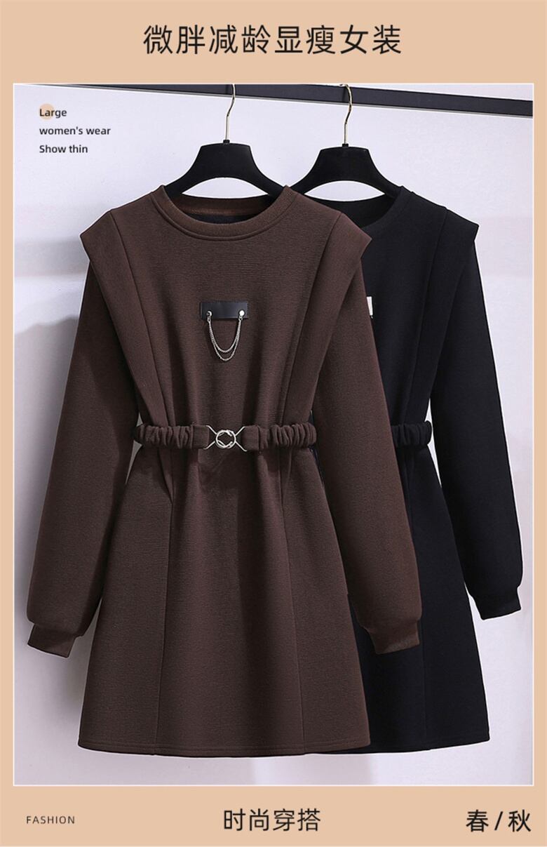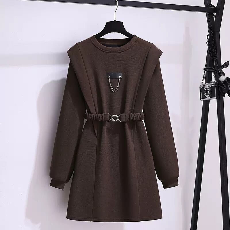 大きいサイズの婦人服 2023 太った姉妹春の新しい M プラス ベルベットの厚いニット ウエスト チェーン A ワード ドレス女性 大きめサイズ スプリング 春物 8884180952758239