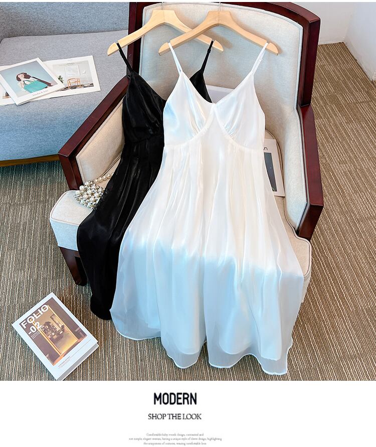 プラスサイズの婦人服 2023 夏の新しい太った姉妹の気質の年齢を減らすデザイン センス フレンチ ウエスト ストラップ ドレス 大きめサイズ サマー 夏物 8884188934115910