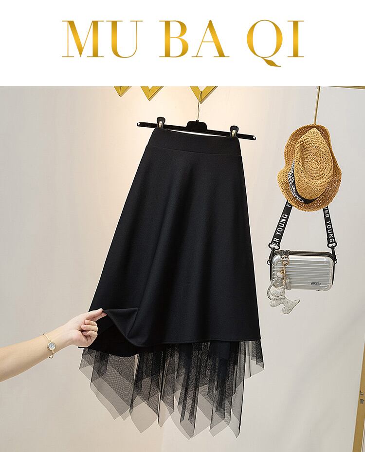 プラスサイズの婦人服2023流行の女性の春の新しいスタイルの太った妹は、両側にメッシュのガーゼを着て、肉を覆い、薄く見えます。不規則なスカートの潮 大きめサイズ スプリング 春物 888416871786752