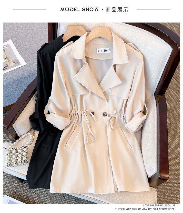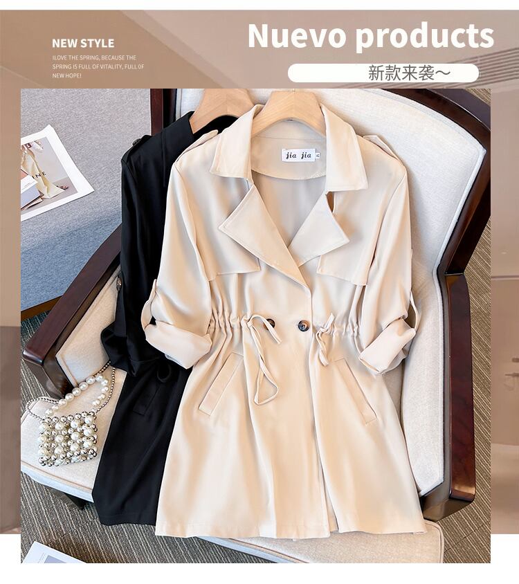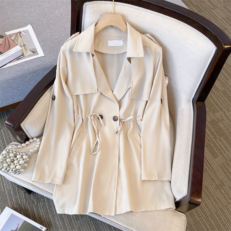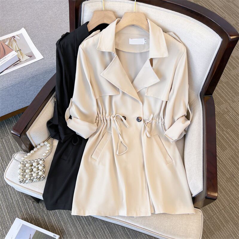 大きいサイズの婦人服 2023 春服ファット シスターズ新しいファッション ウエスタン スタイル ミドル丈ゆるい腹カバー ウインドブレーカー ジャケット 大きめサイズ スプリング 春物 8884145252661781